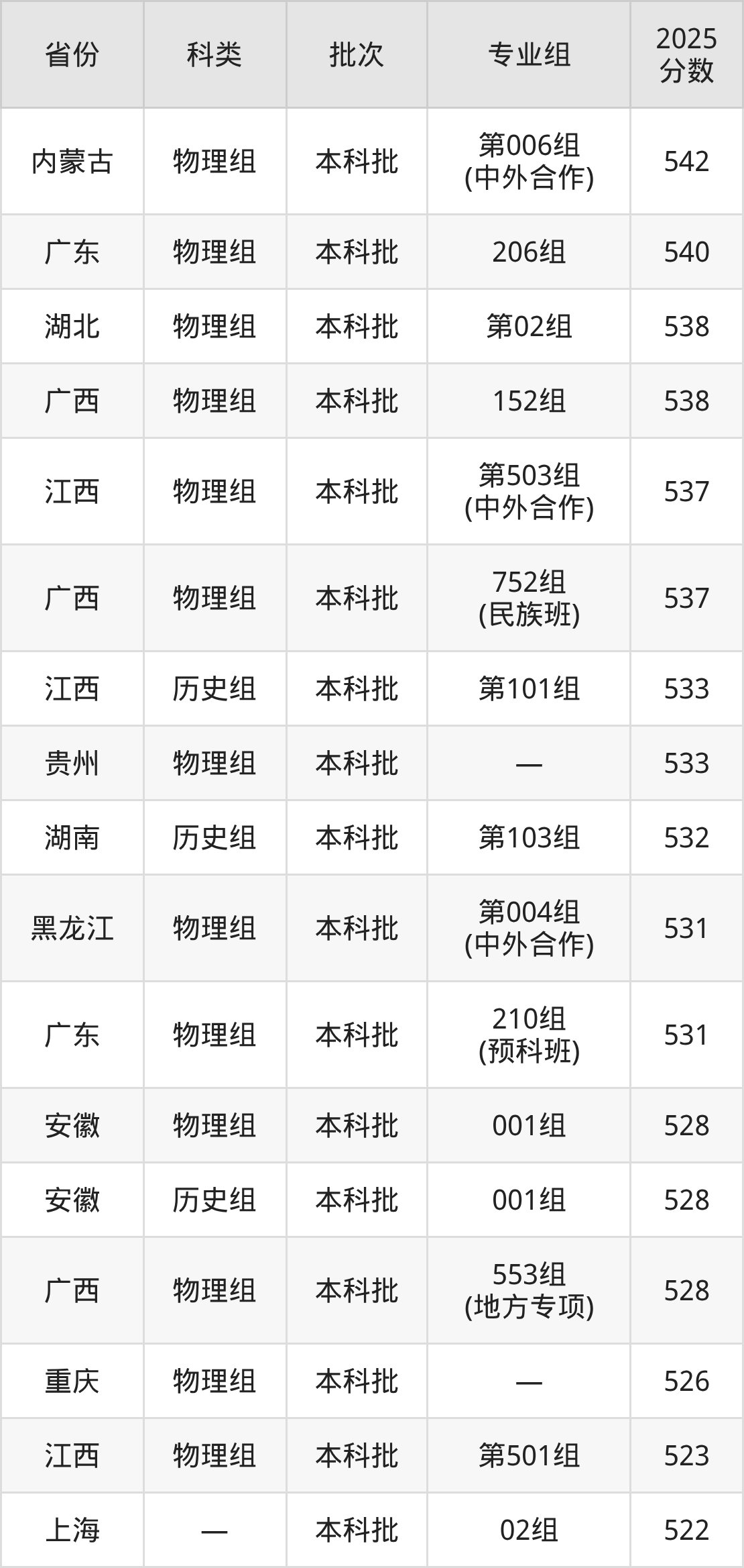 下面是桂林电子科技大学2025年在全国各省的录取分数线一览表,供参考: