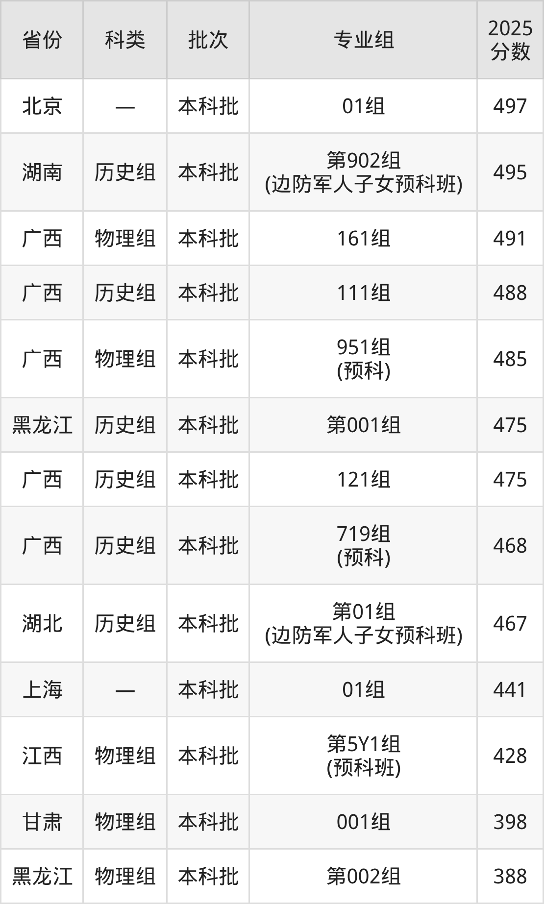 | 11 | 少数民族预科班 |