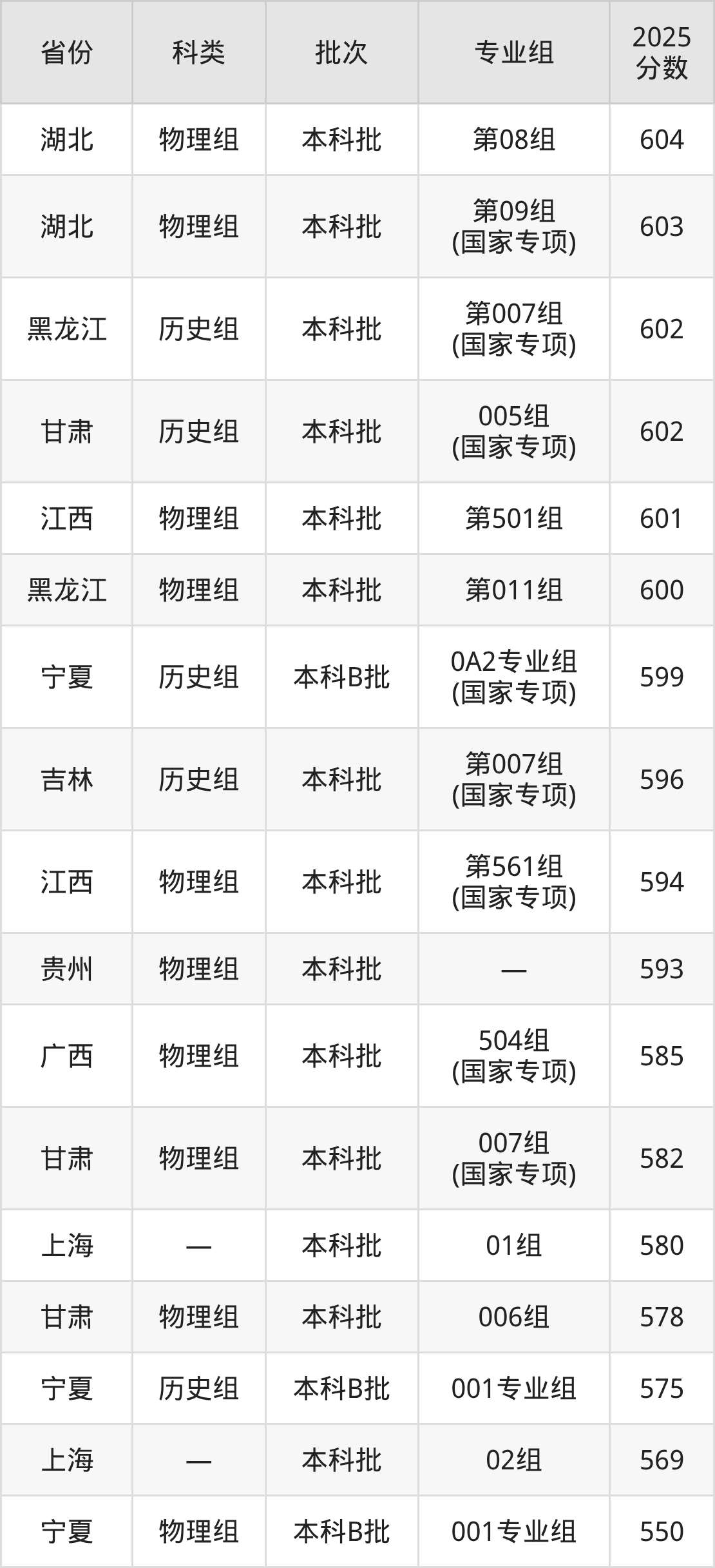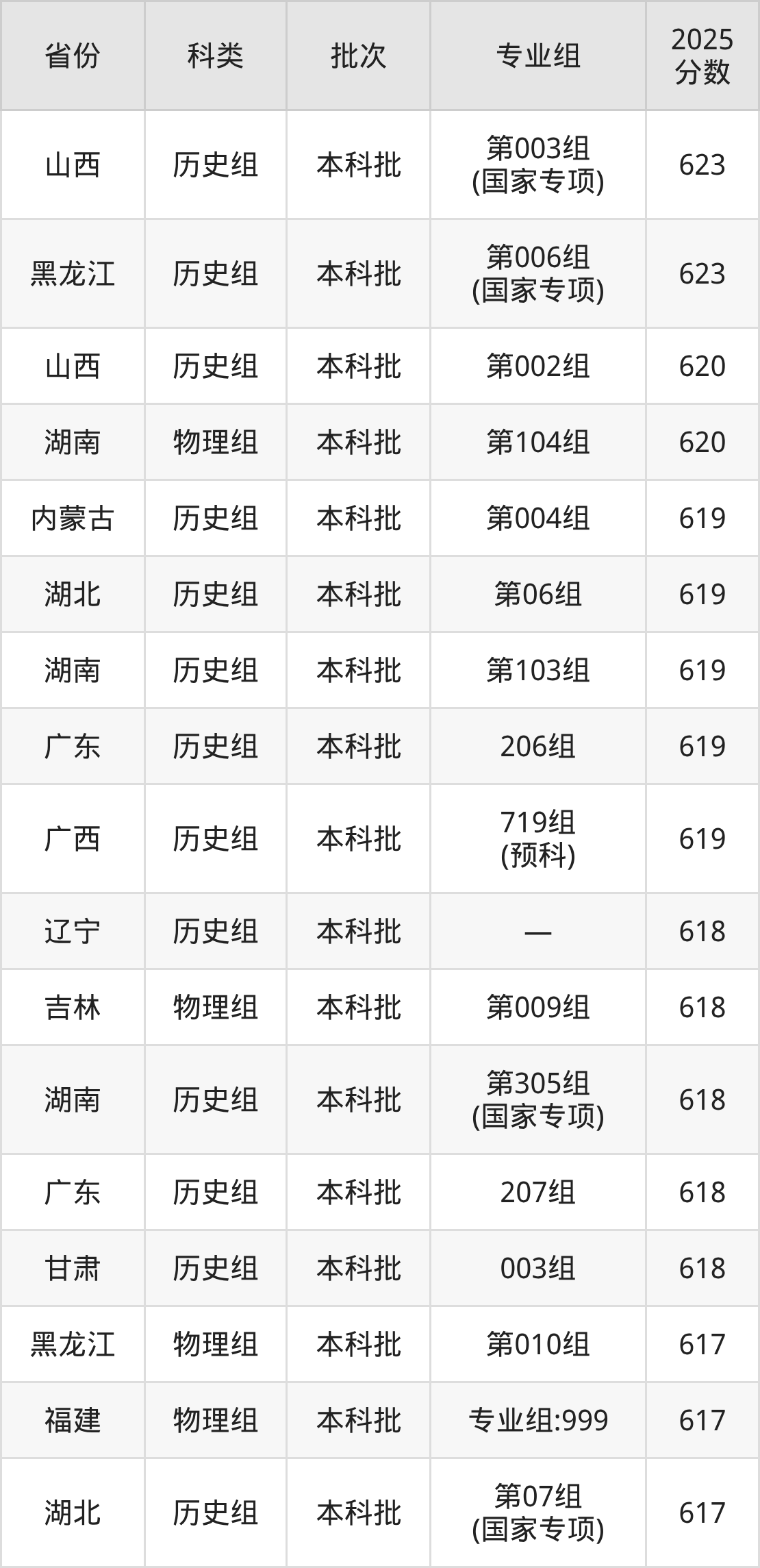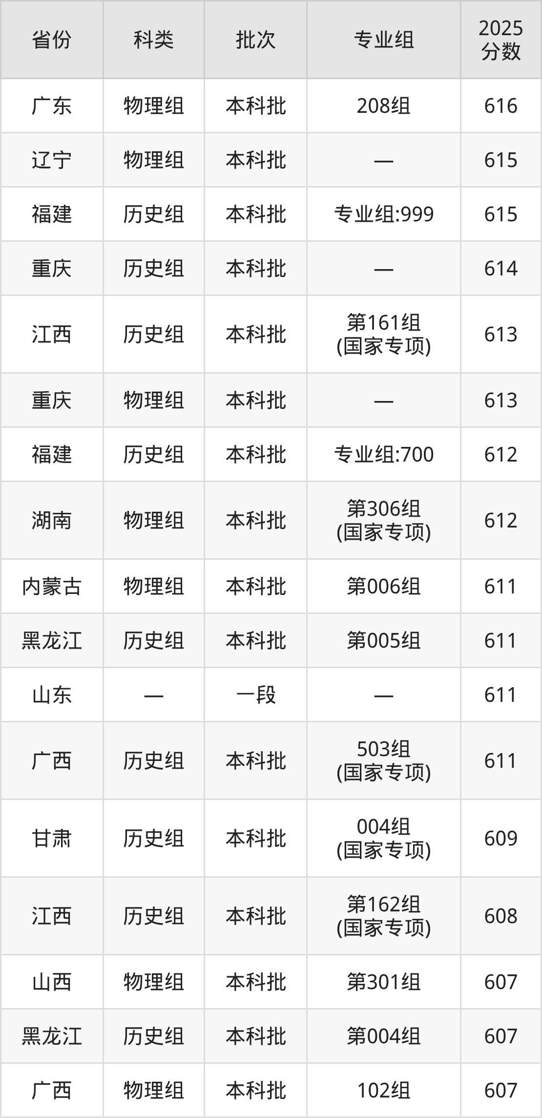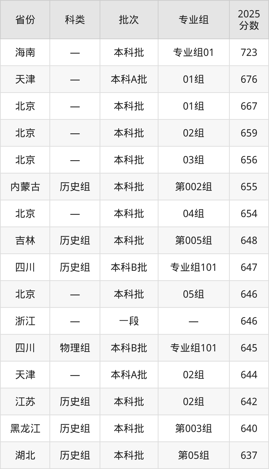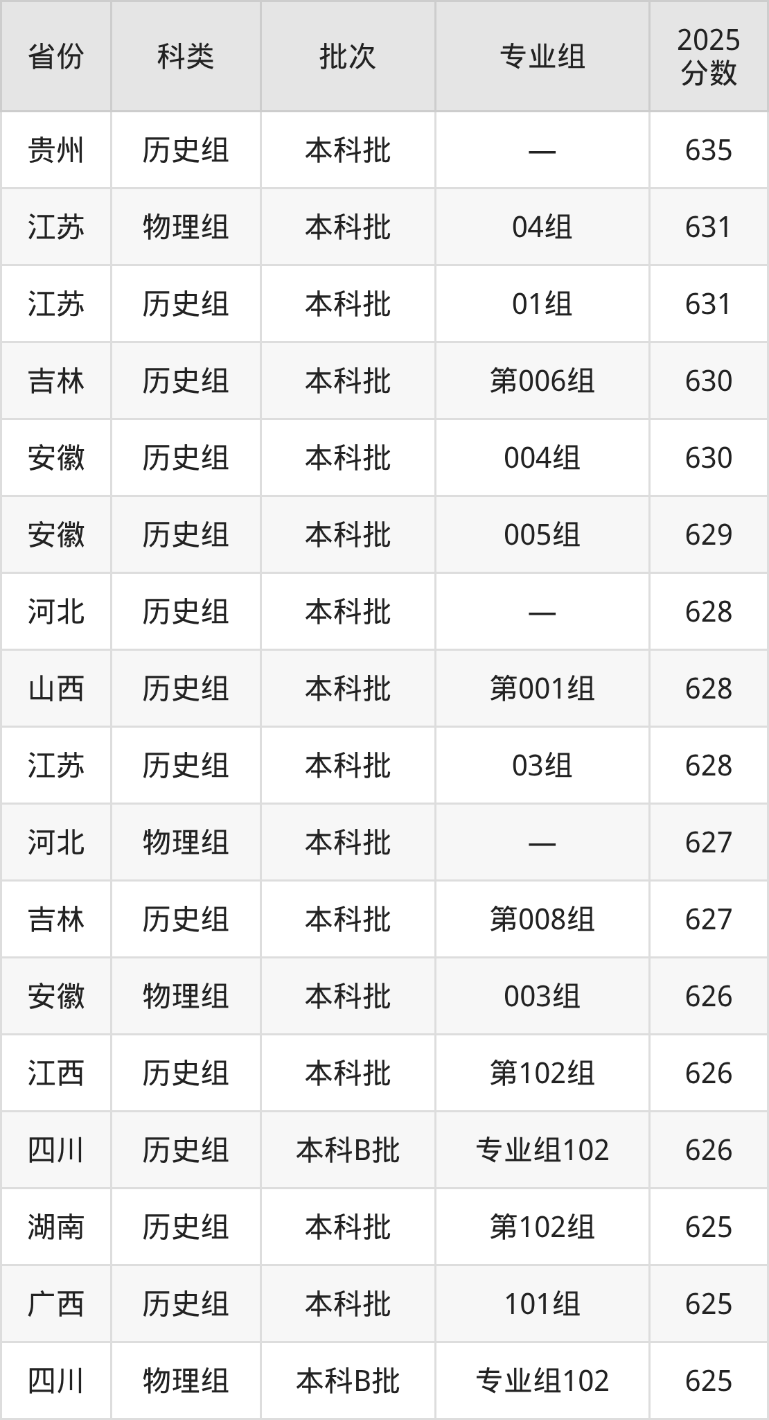 下面是中国政法大学2025年在全国各省的录取分数线一览表,供参考: