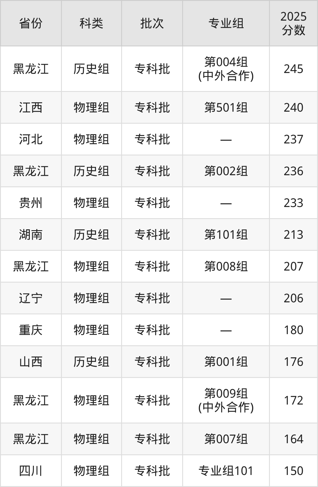 下面是哈尔滨幼儿师范高等专科学校2025年在全国各省的录取分数线一览表,供参考: