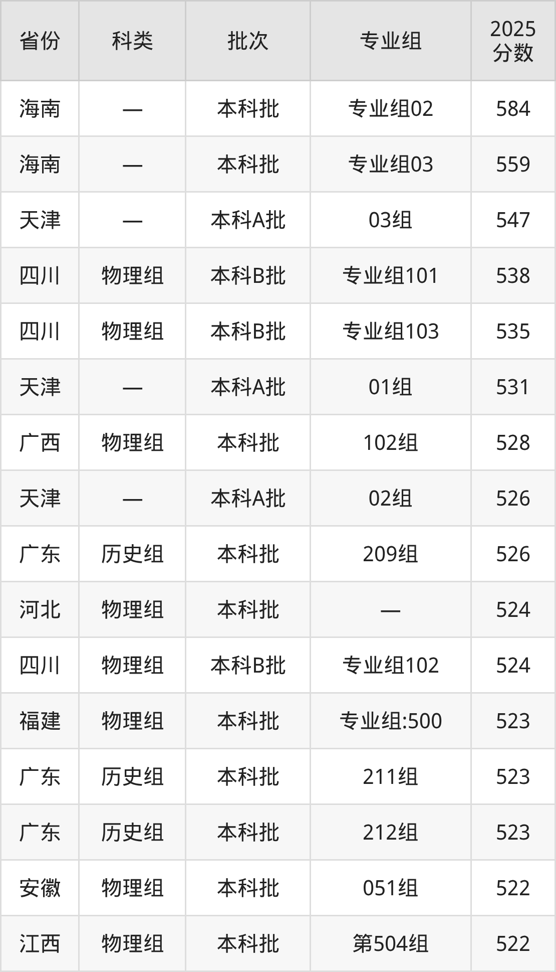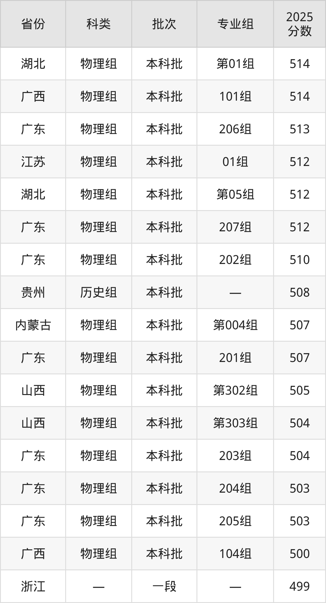2025年广东石油化工学院在全国普通批次招生的录取分数范围位于424~584分之间,其中省内分数范围为499分~526分,历史组最低分专业组为“210组”,考生521分即可报考,物理组最低分专业组为“208组”,考生499分即可报考。