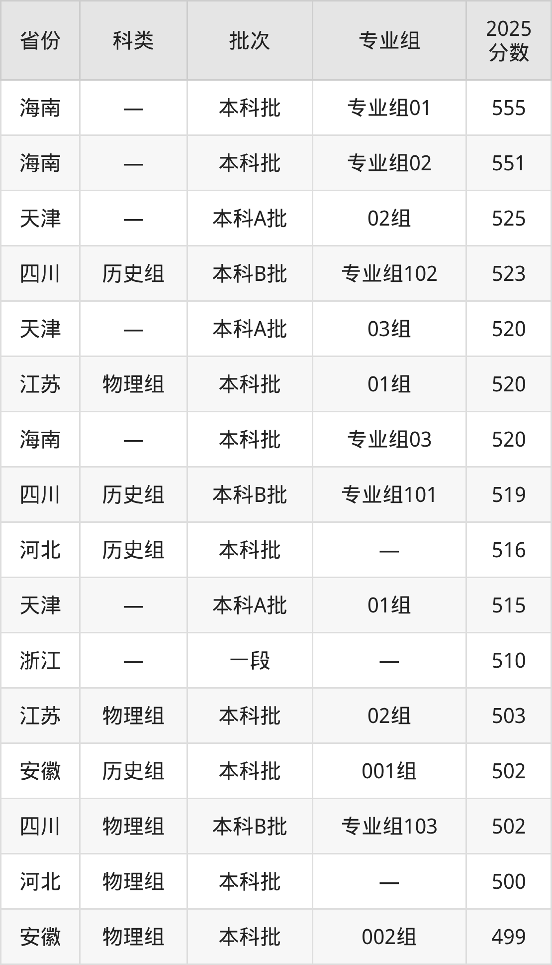 而海南地区考生的分数门槛最高,2025年河北建筑工程学院专业组01在海南招生最低分为555分,考生至少要超本科线75分才有可能被录取。