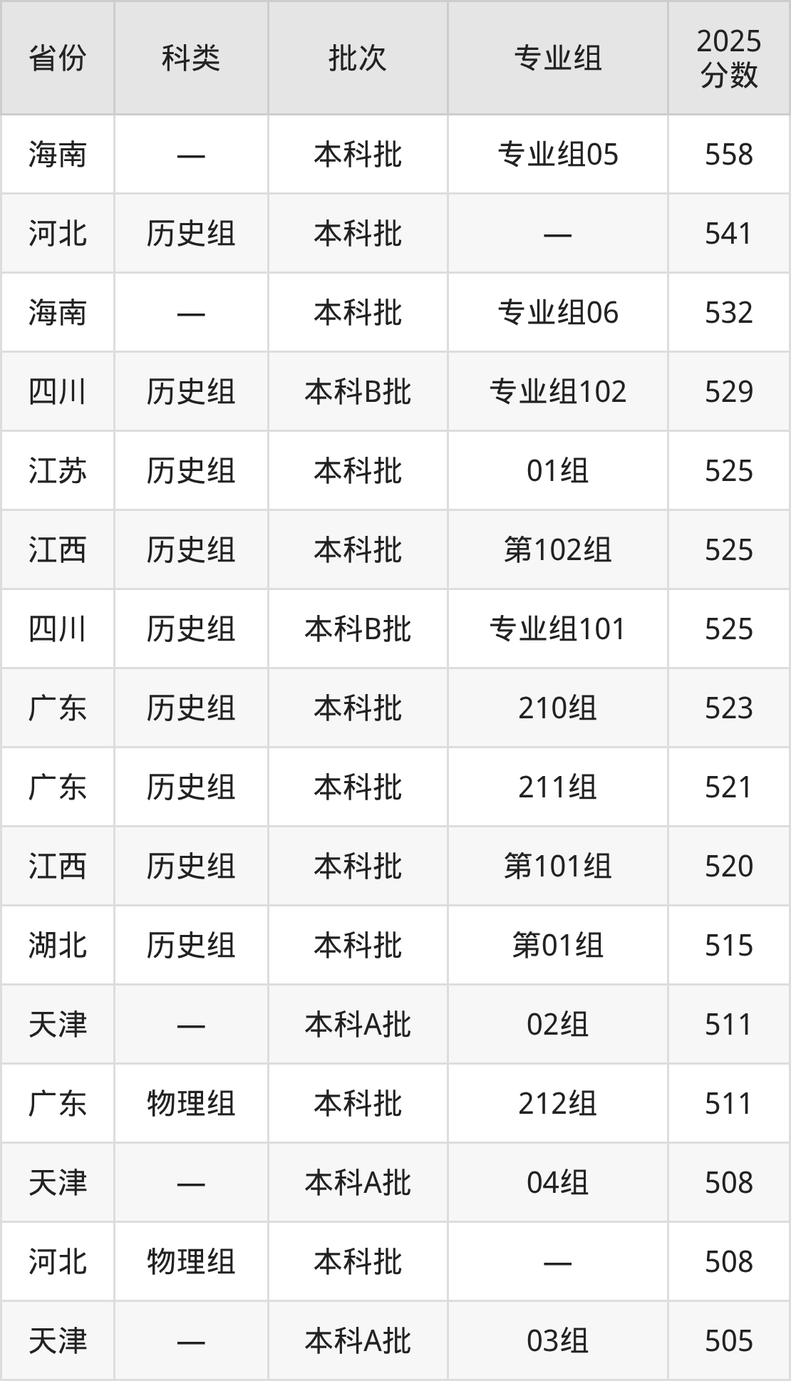 而海南地区考生的分数门槛最高,2025年广西科技师范学院专业组05在海南招生最低分为558分,考生至少要超本科线78分才有可能被录取。