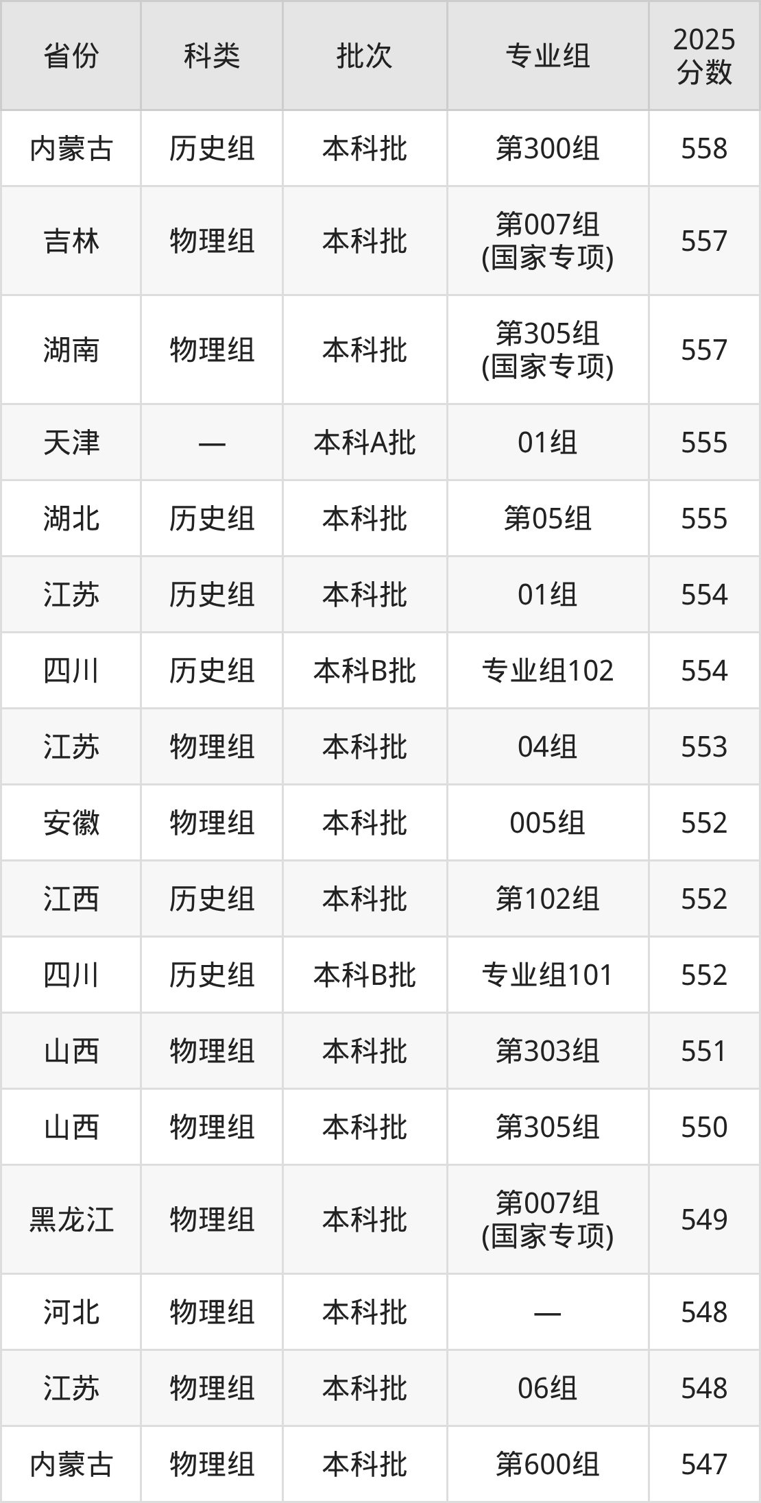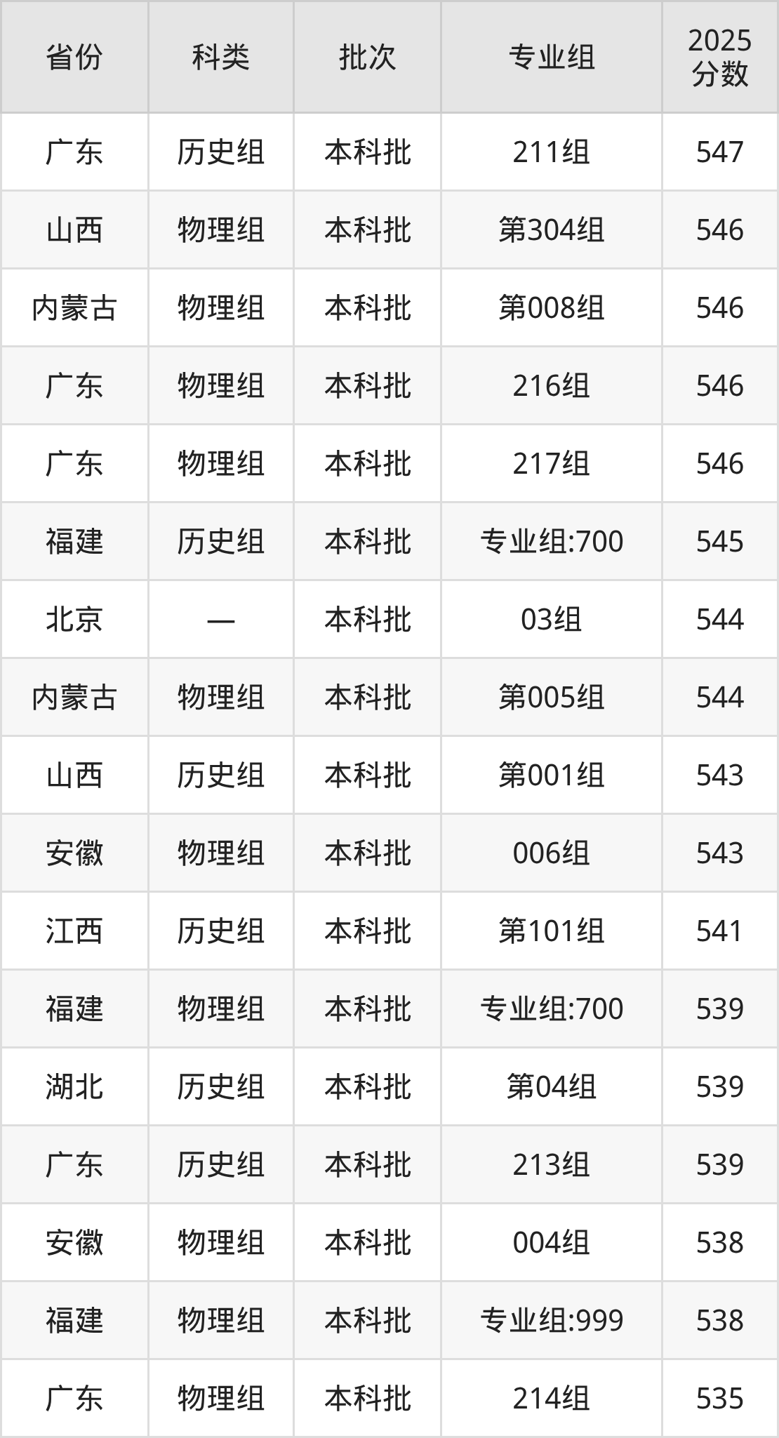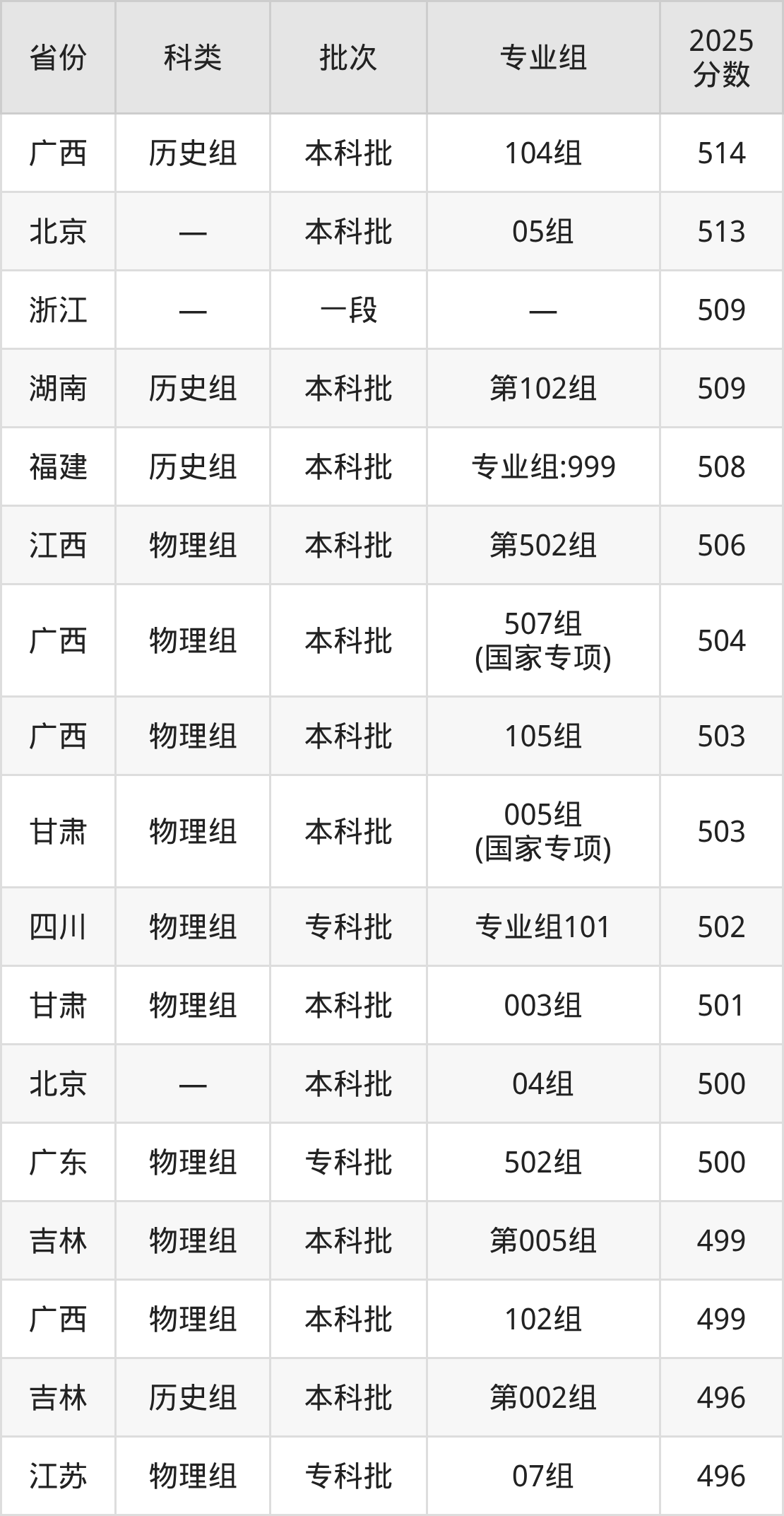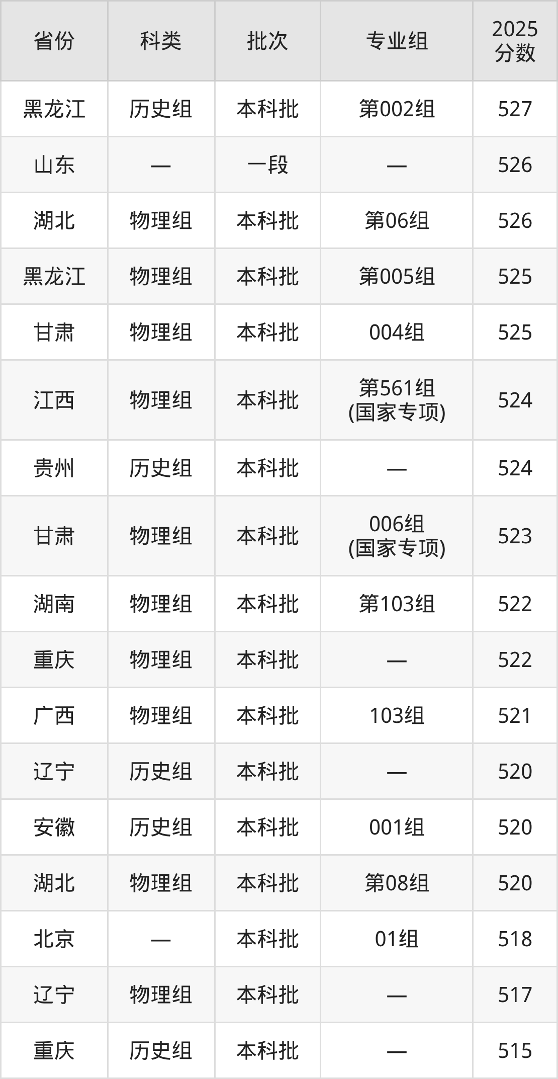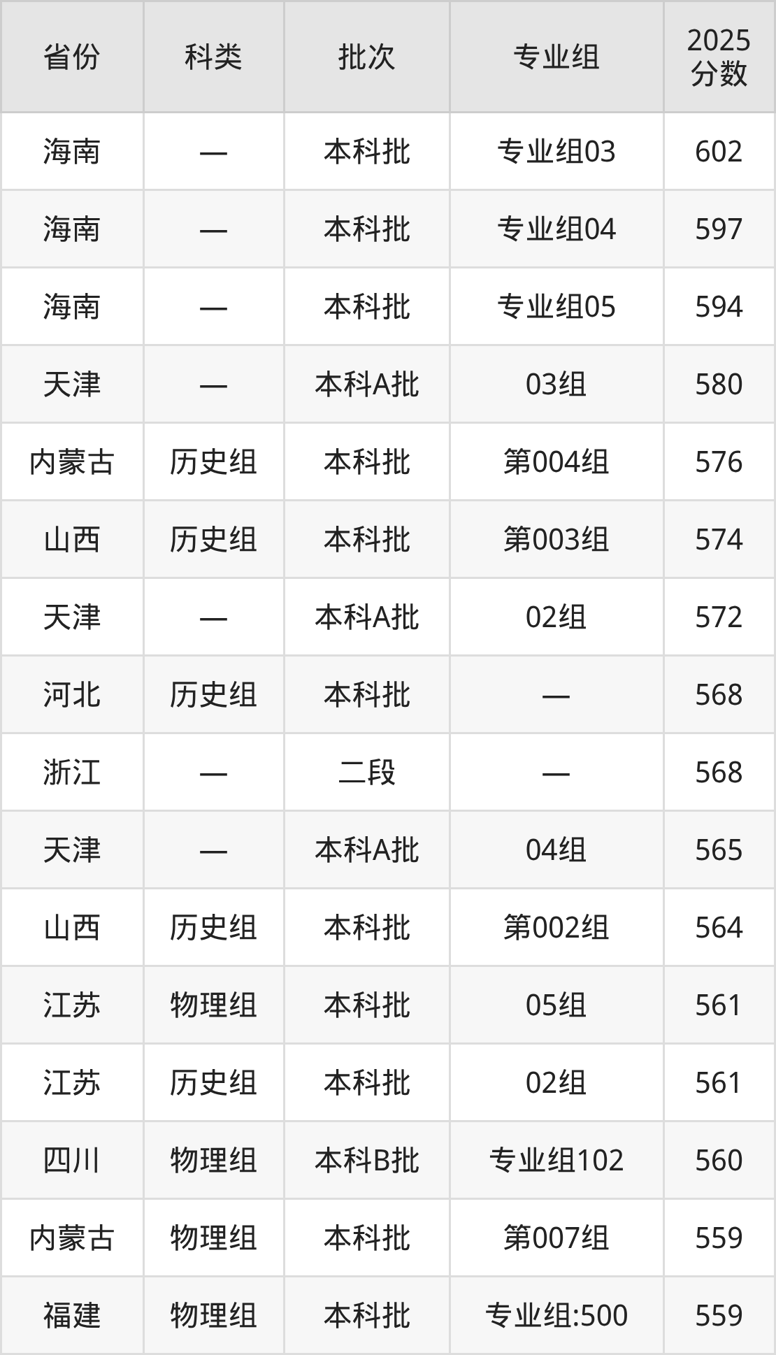 目前能查询到的最新分数为2025年招录数据,2026年中国民用航空飞行学院录取分数线会在高考招录结束后公布,本届考生可以利用往年分数预估录取概率。