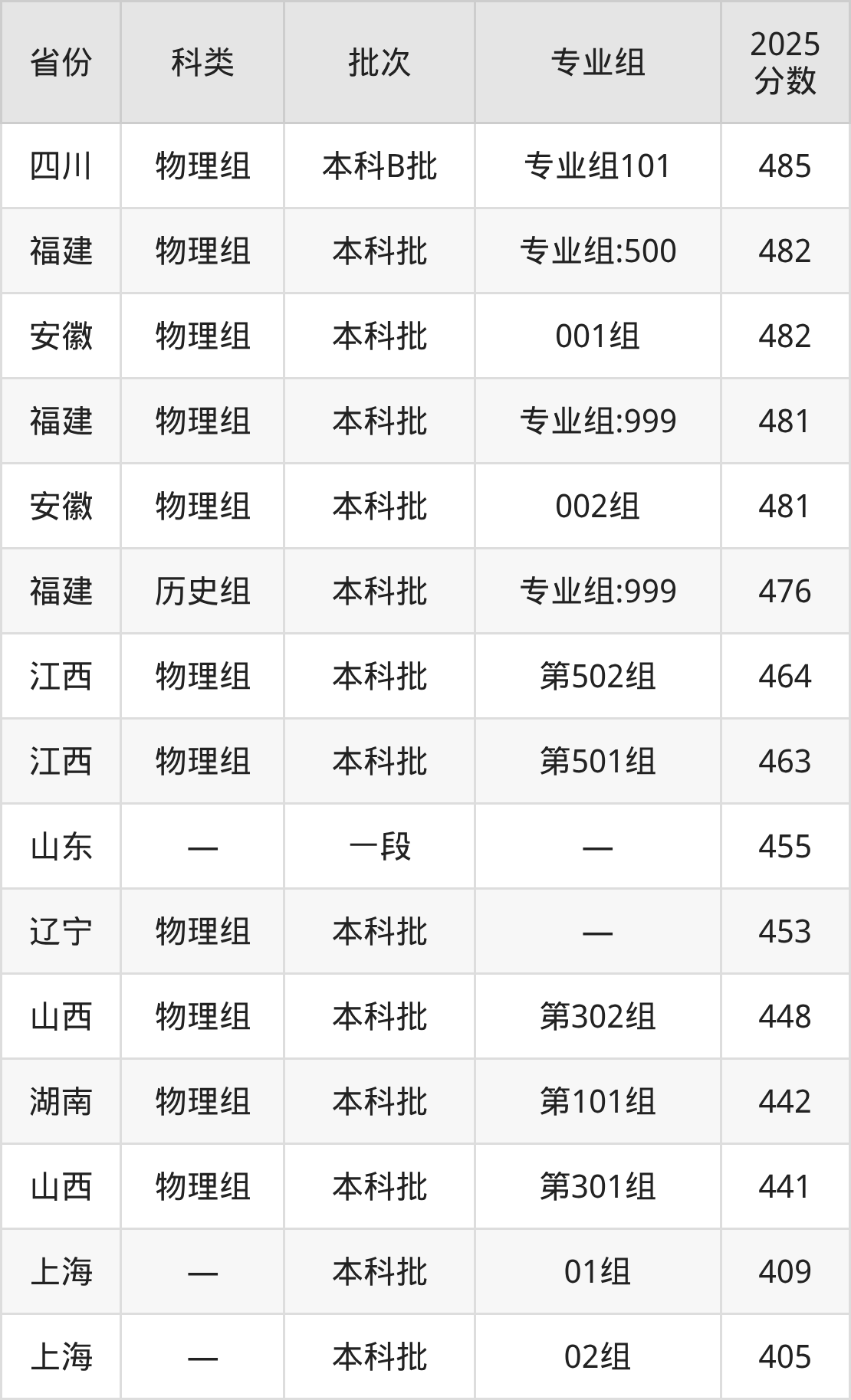 下面是赣南师范大学科技学院2025年在全国各省的录取分数线一览表,供参考: