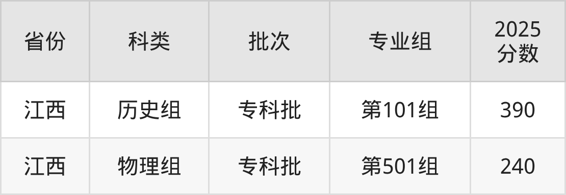 下面是江西陶瓷工艺美术职业技术学院2025年在全国各省的录取分数线一览表,供参考: