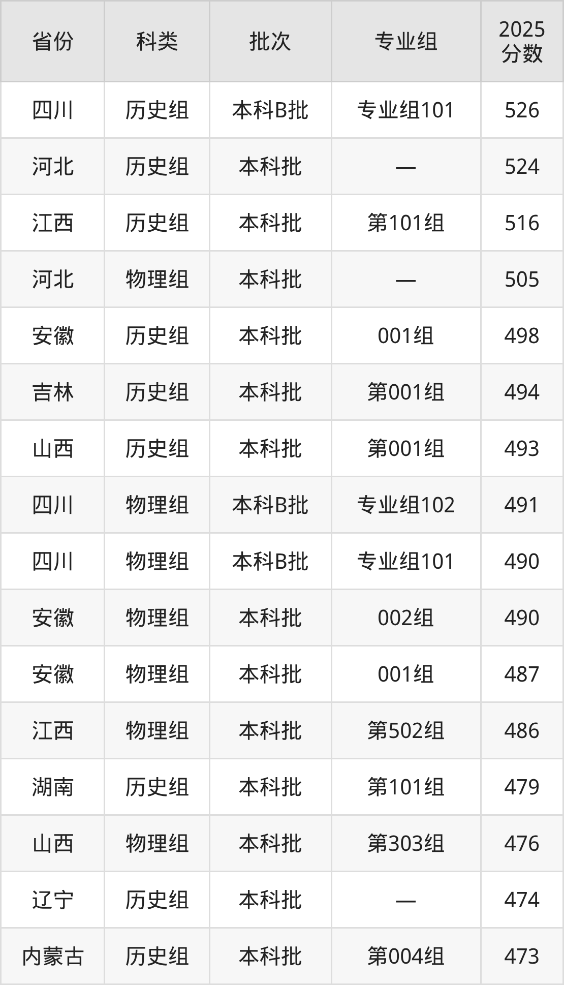 2025年朝阳师范学院在全国普通批次招生的录取分数范围位于150~526分之间,其中省内分数范围为275分~474分,物理组考生275分即可报考,历史组考生340分即可报考。