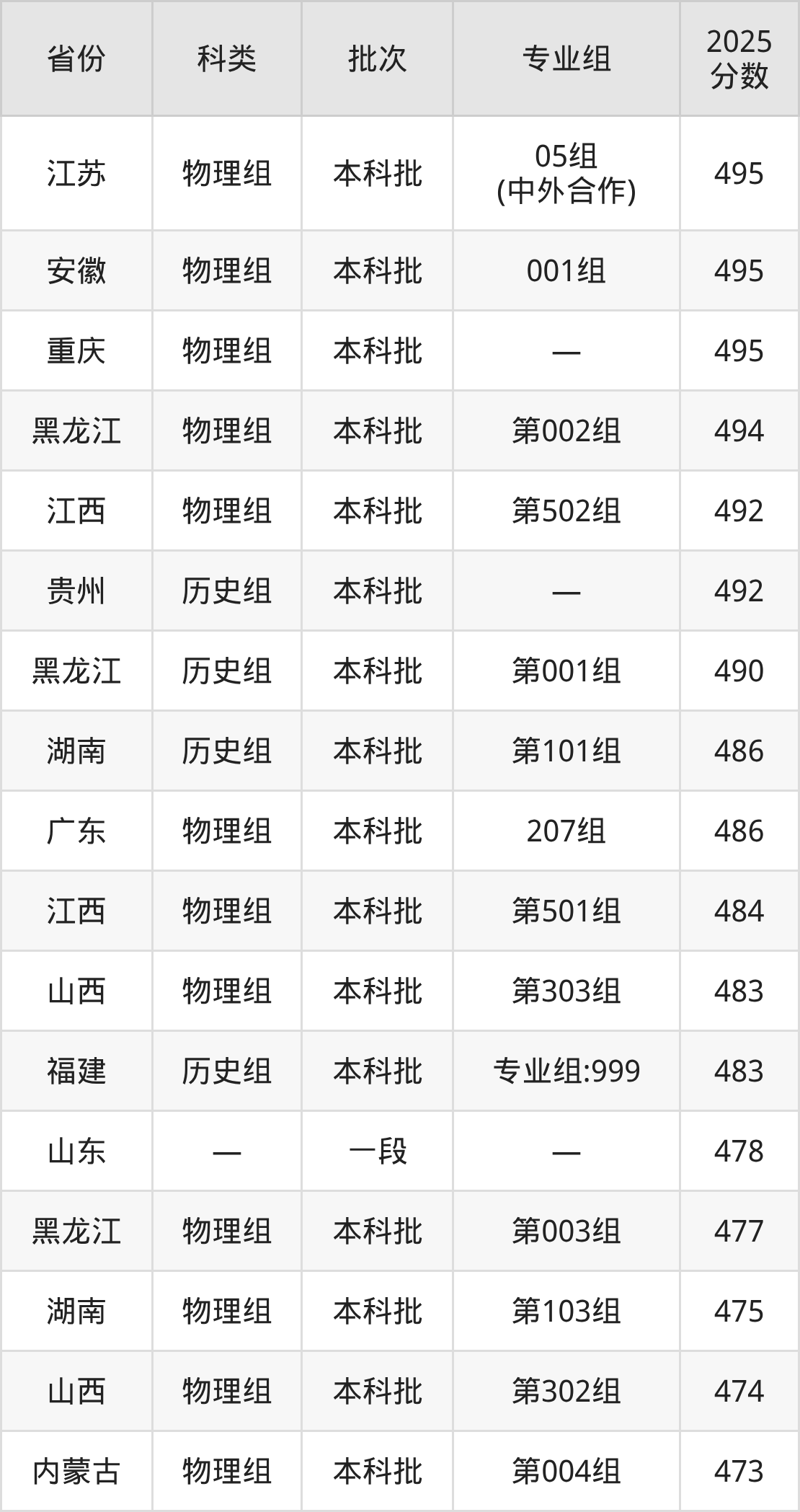 下面是浙江万里学院2025年在全国各省的录取分数线一览表,供参考: