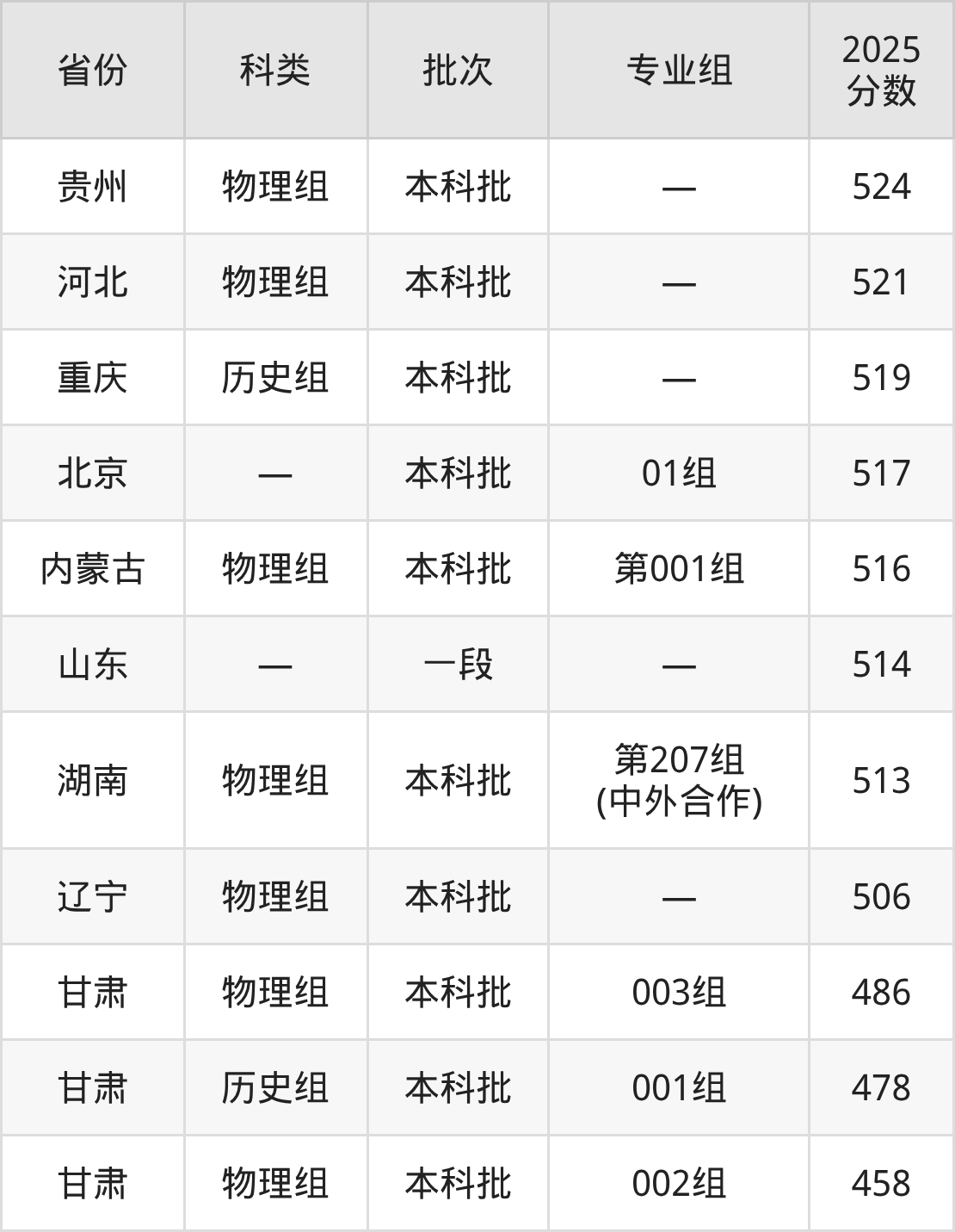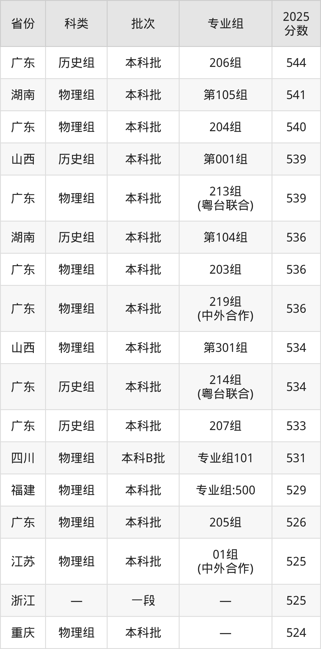 下面是东莞理工学院2025年在全国各省的录取分数线一览表,供参考: