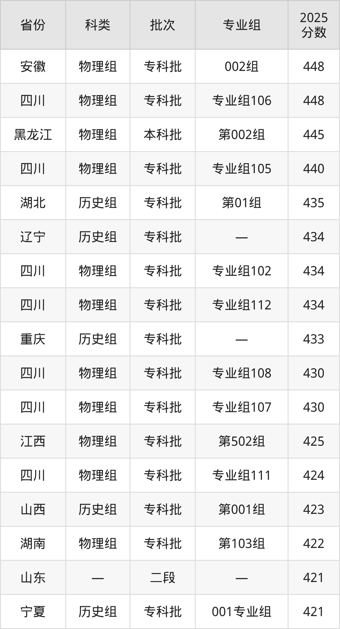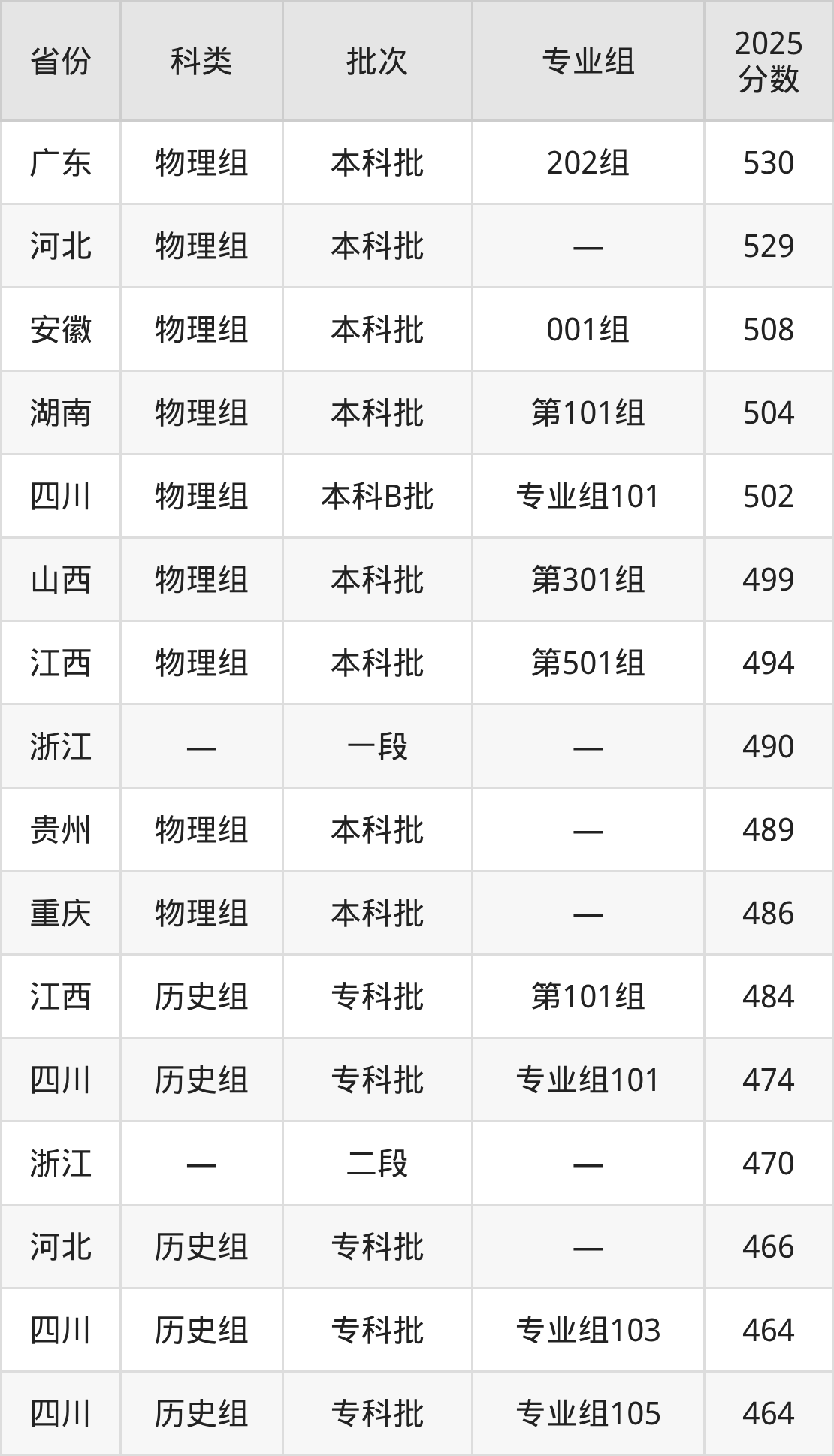 下面是重庆电子科技职业大学2025年在全国各省的录取分数线一览表,供参考: