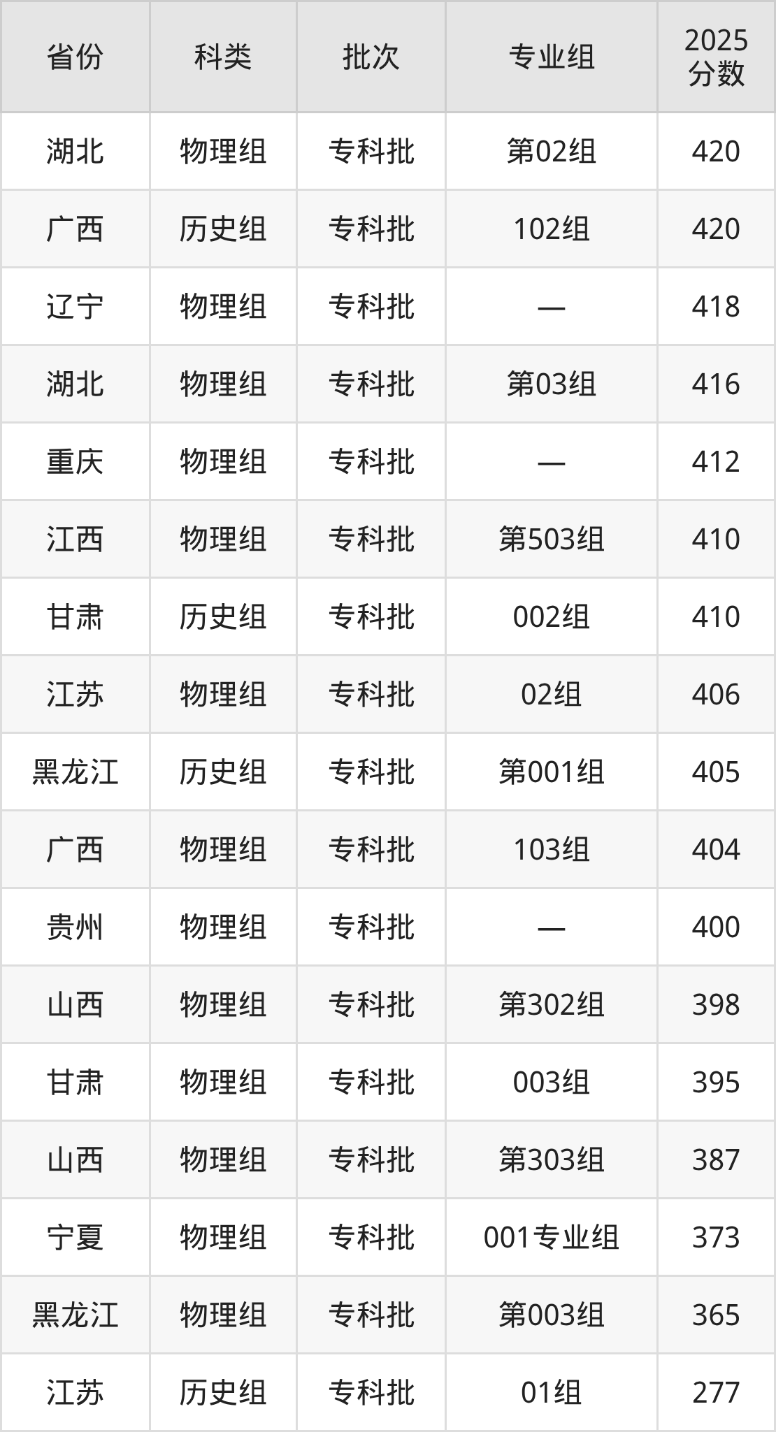 重庆电子科技职业大学2026年录取分数需在高招结束官方数据公布后更新,2026届有意向报考该校的同学,可以在填报志愿时参考重庆电子科技职业大学2025年录取分数线: