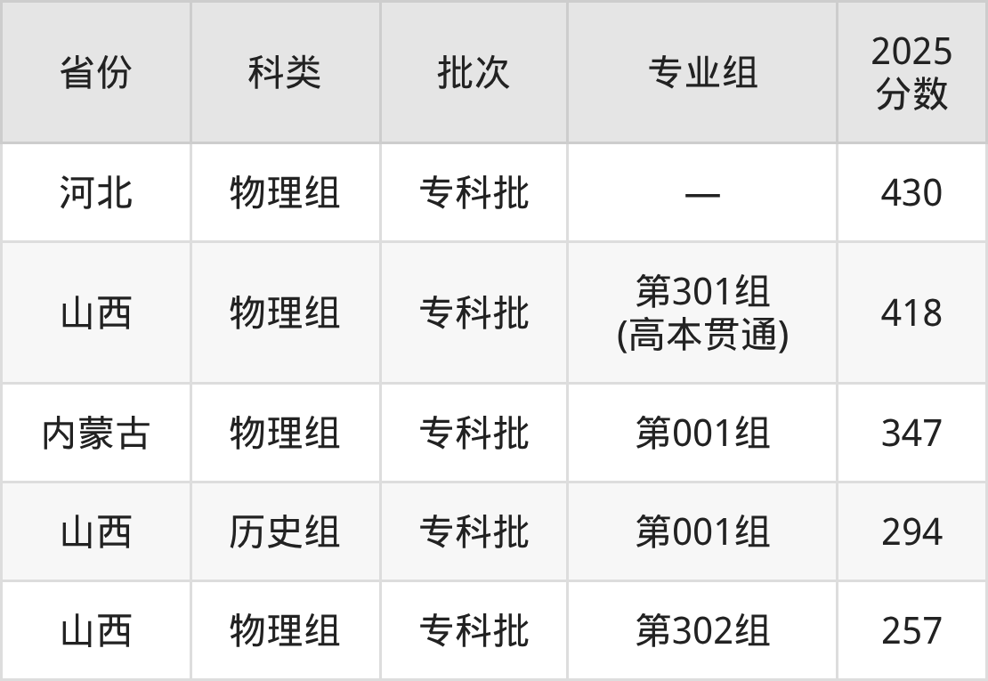 下面是晋城职业技术学院2025年在全国各省的录取分数线一览表,供参考: