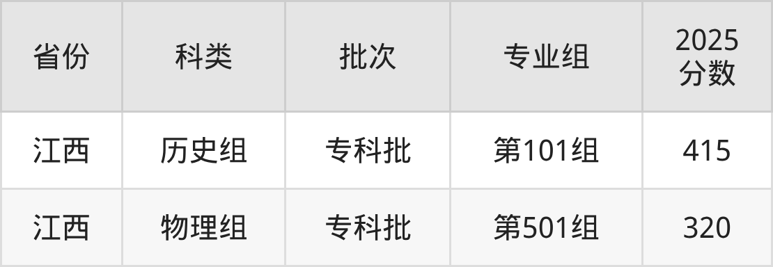 下面是鹰潭职业技术学院2025年在全国各省的录取分数线一览表,供参考: