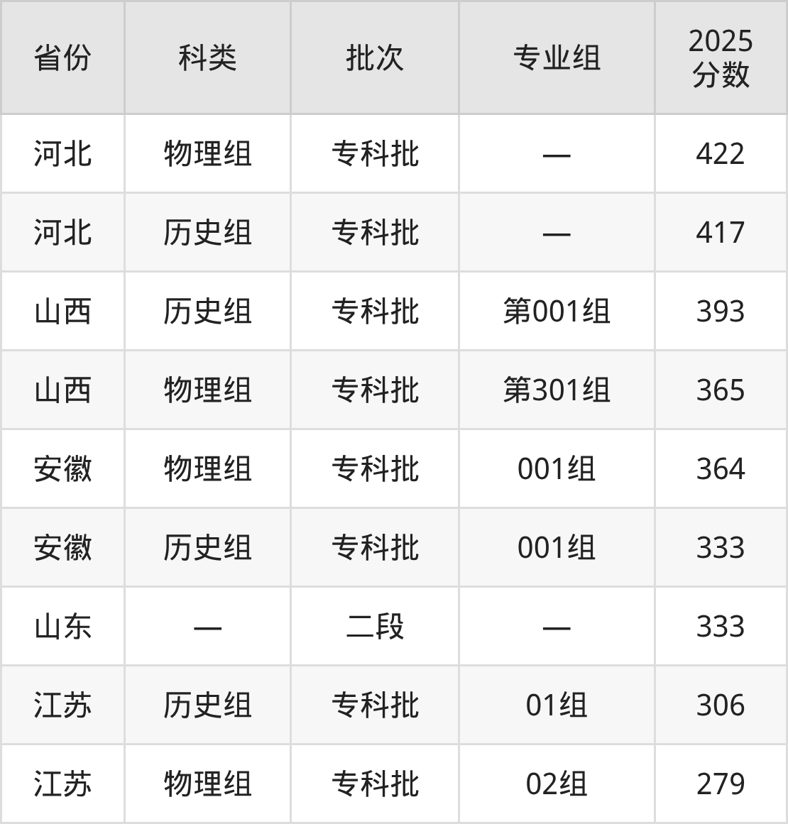 下面是永城职业学院2025年在全国各省的录取分数线一览表,供参考: