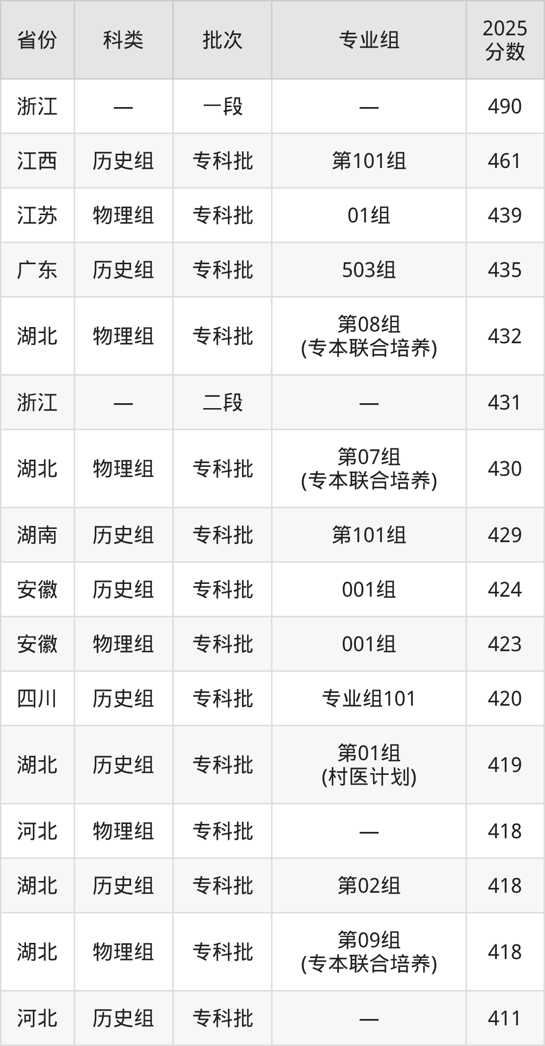 而浙江地区考生的分数门槛最高,2025年湖北三峡职业技术学院在浙江招生最低分为490分,考生至少要超一段线0分才有可能被录取。