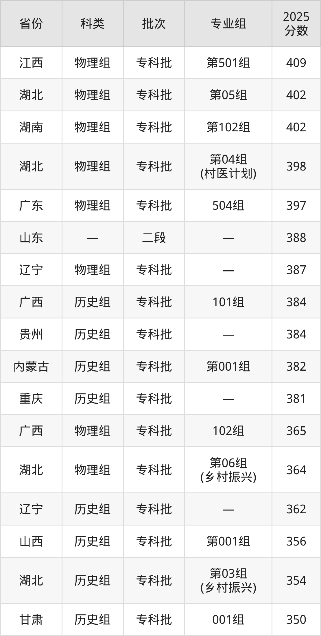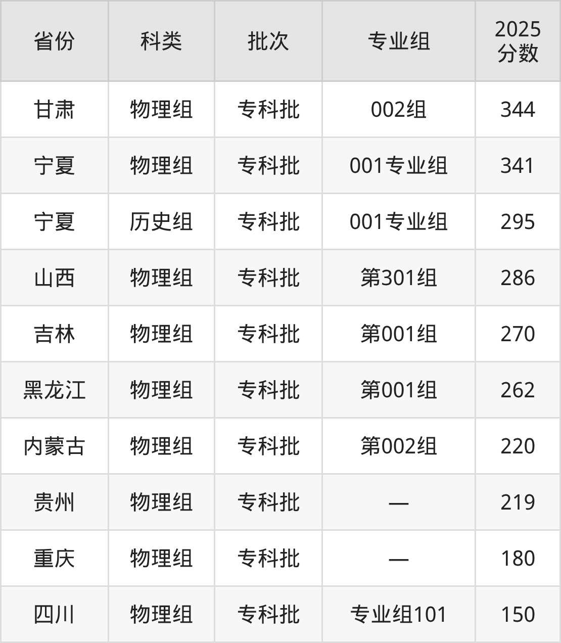 下面是湖北三峡职业技术学院2025年在全国各省的录取分数线一览表,供参考: