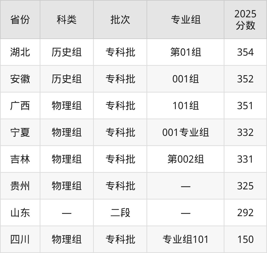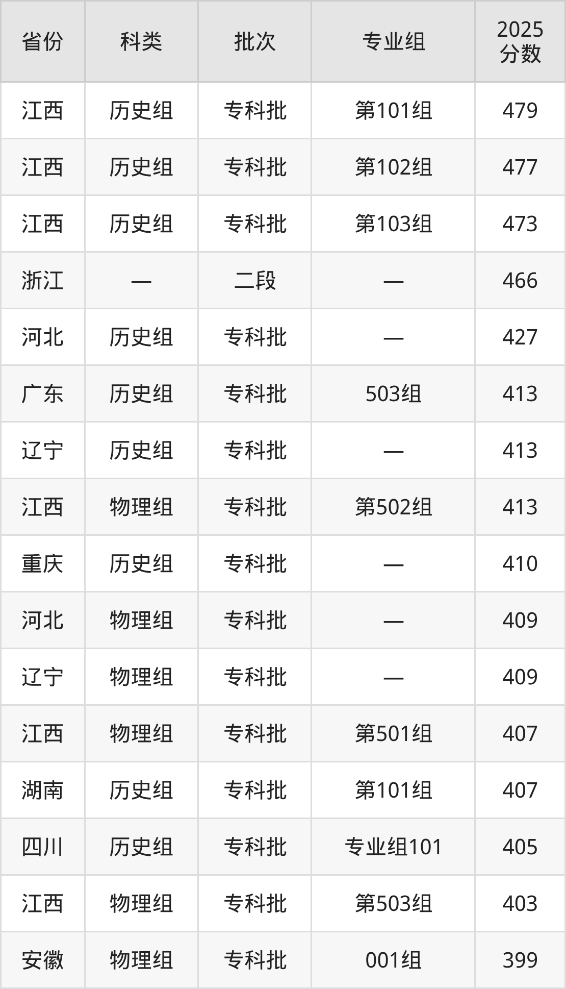 而江西地区历史组考生的分数门槛最高,2025年廊坊卫生职业学院第101组在江西招生最低分为479分,考生至少要超专科线189分才有可能被录取。