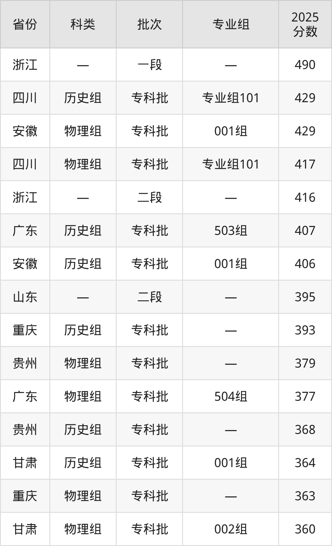 而浙江地区考生的分数门槛最高,2025年四川化工职业技术学院在浙江招生最低分为490分,考生至少要超一段线0分才有可能被录取。