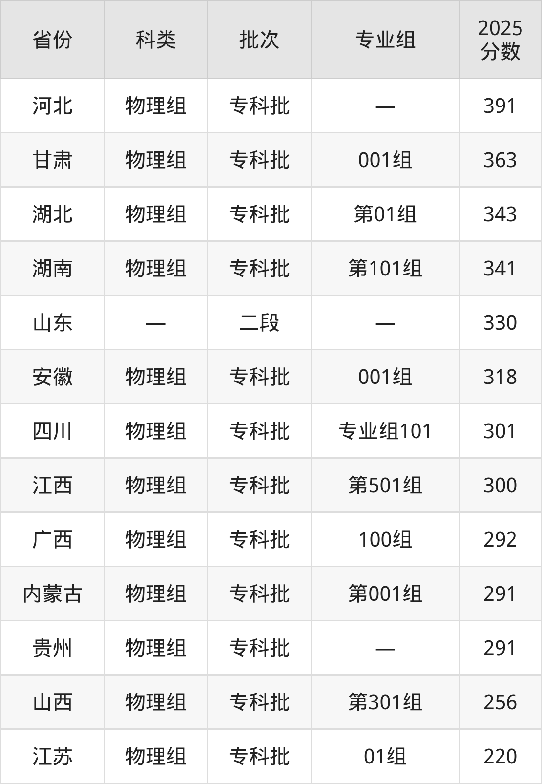 而河北地区物理组考生的分数门槛最高,2025年濮阳石油化工职业技术学院在河北招生最低分为391分,考生至少要超专科线191分才有可能被录取。