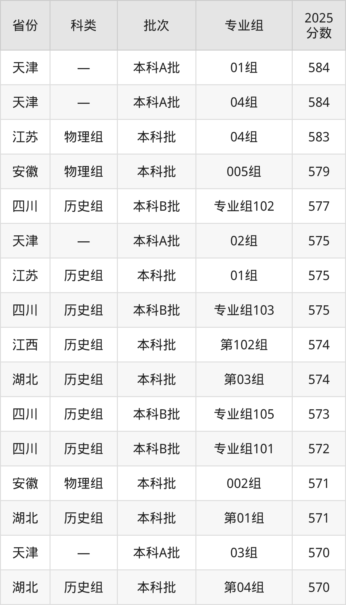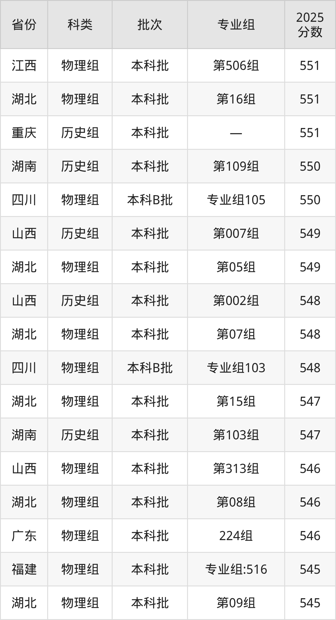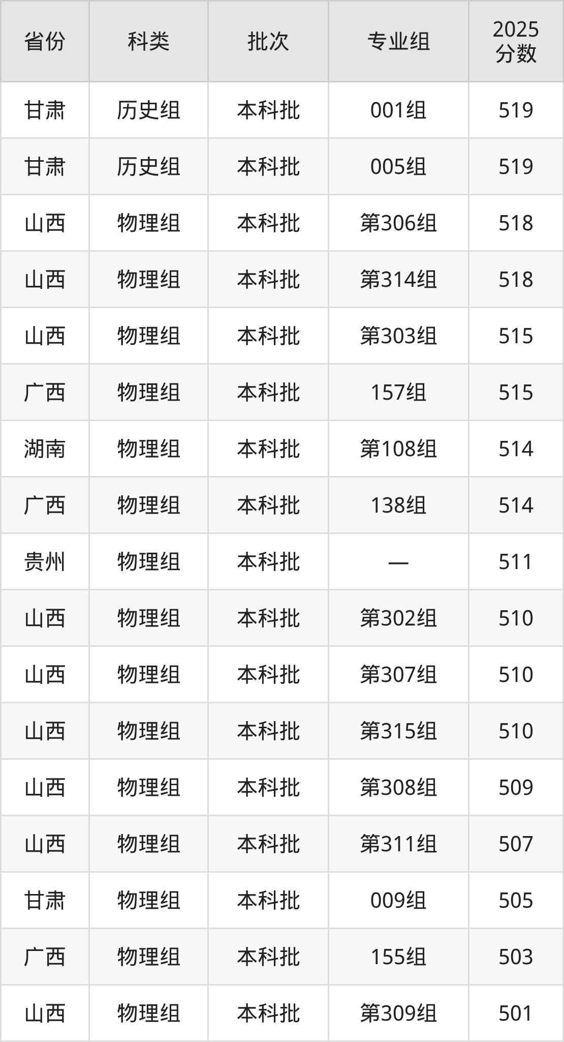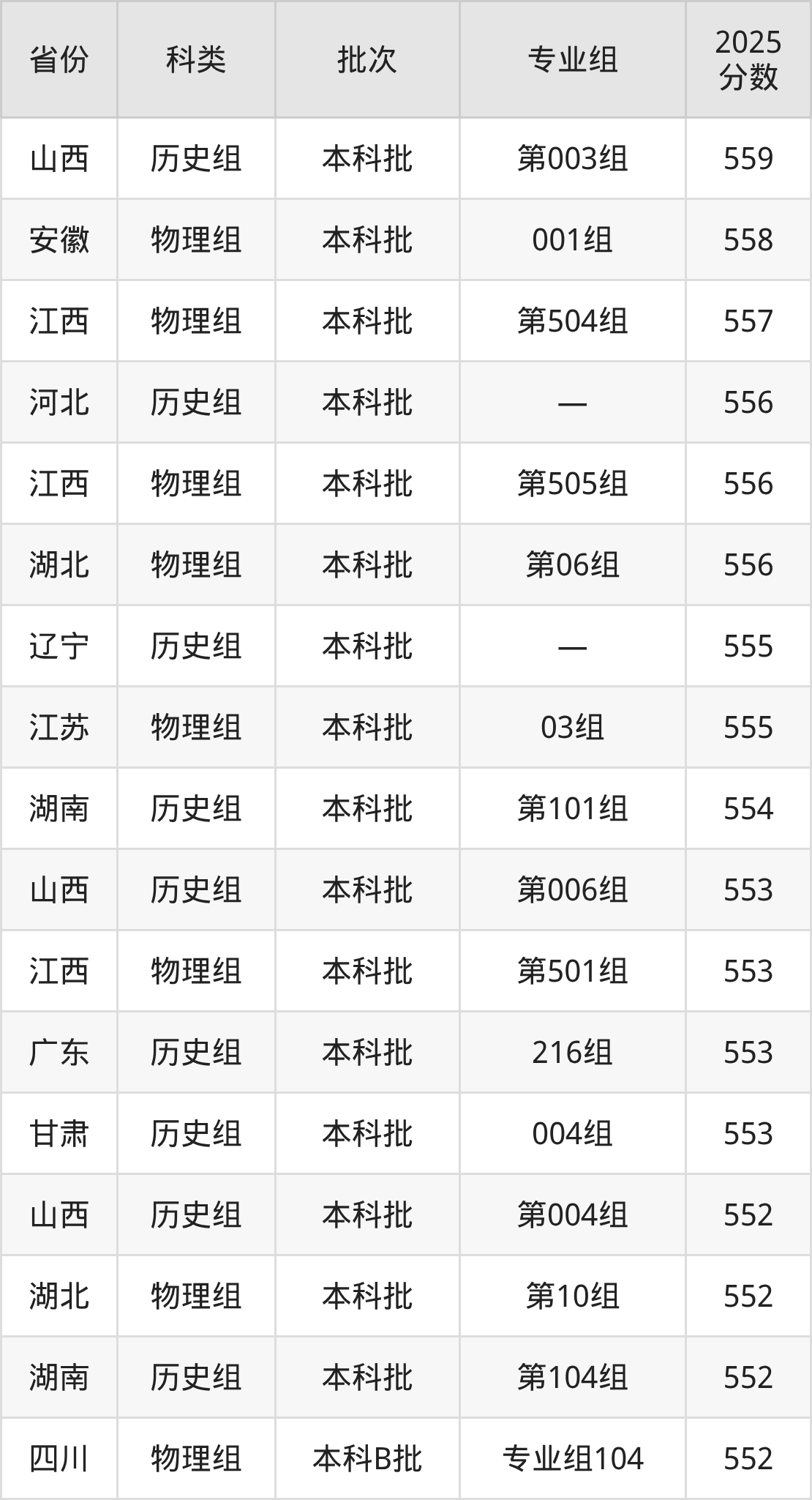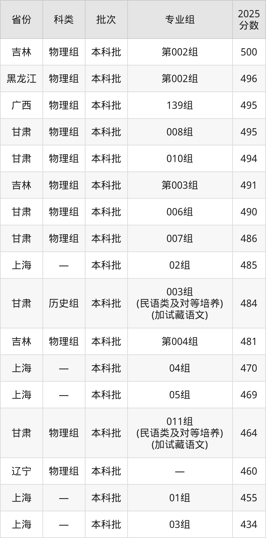 下面是西藏大学2025年在全国各省的录取分数线一览表,供参考: