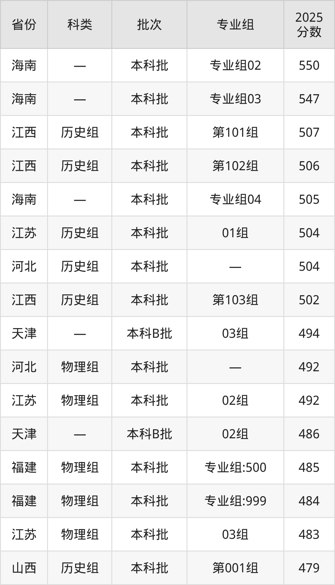 而海南地区考生的分数门槛最高,2025年南昌大学共青学院专业组02在海南招生最低分为550分,考生至少要超本科线70分才有可能被录取。