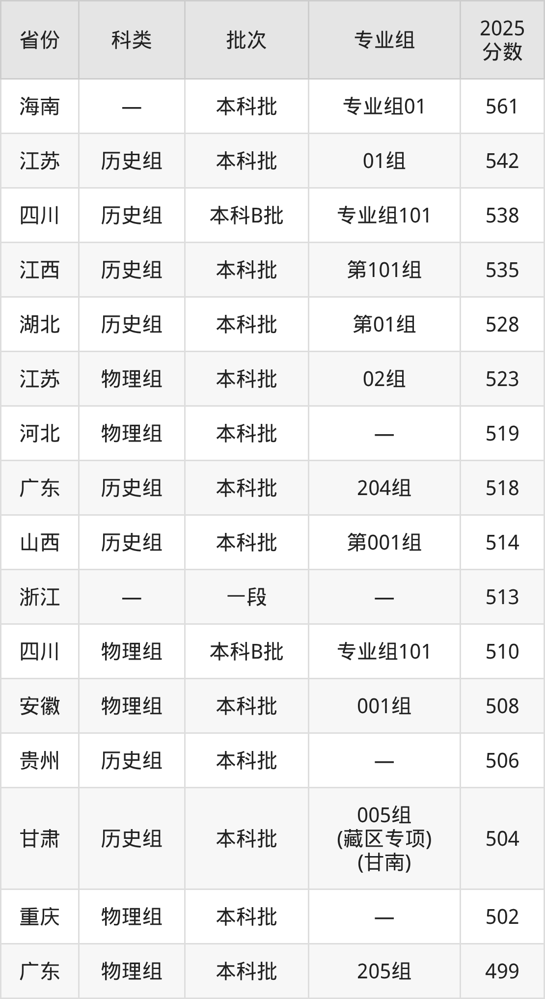 而海南地区考生的分数门槛最高,2025年甘肃农业大学专业组01在海南招生最低分为561分,考生至少要超本科线81分才有可能被录取。