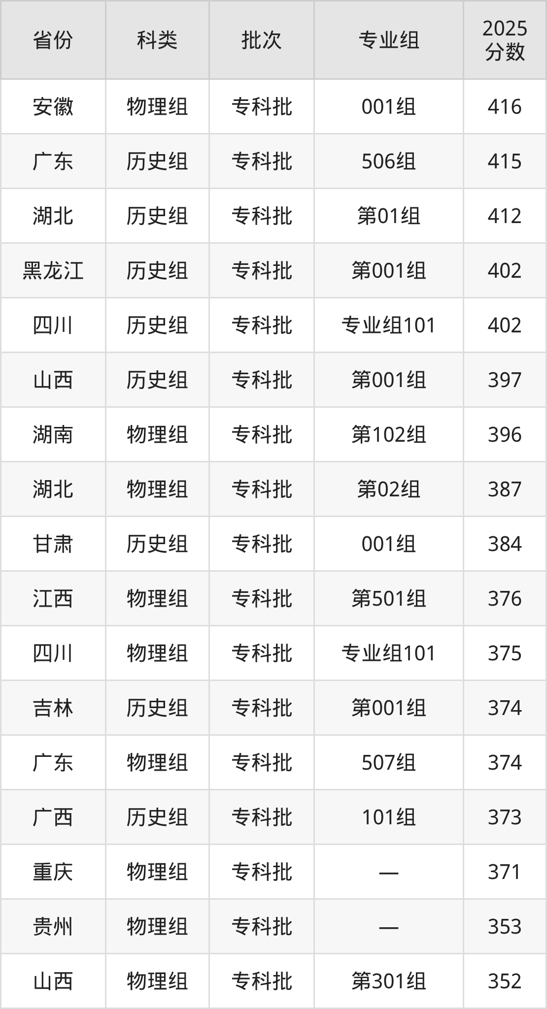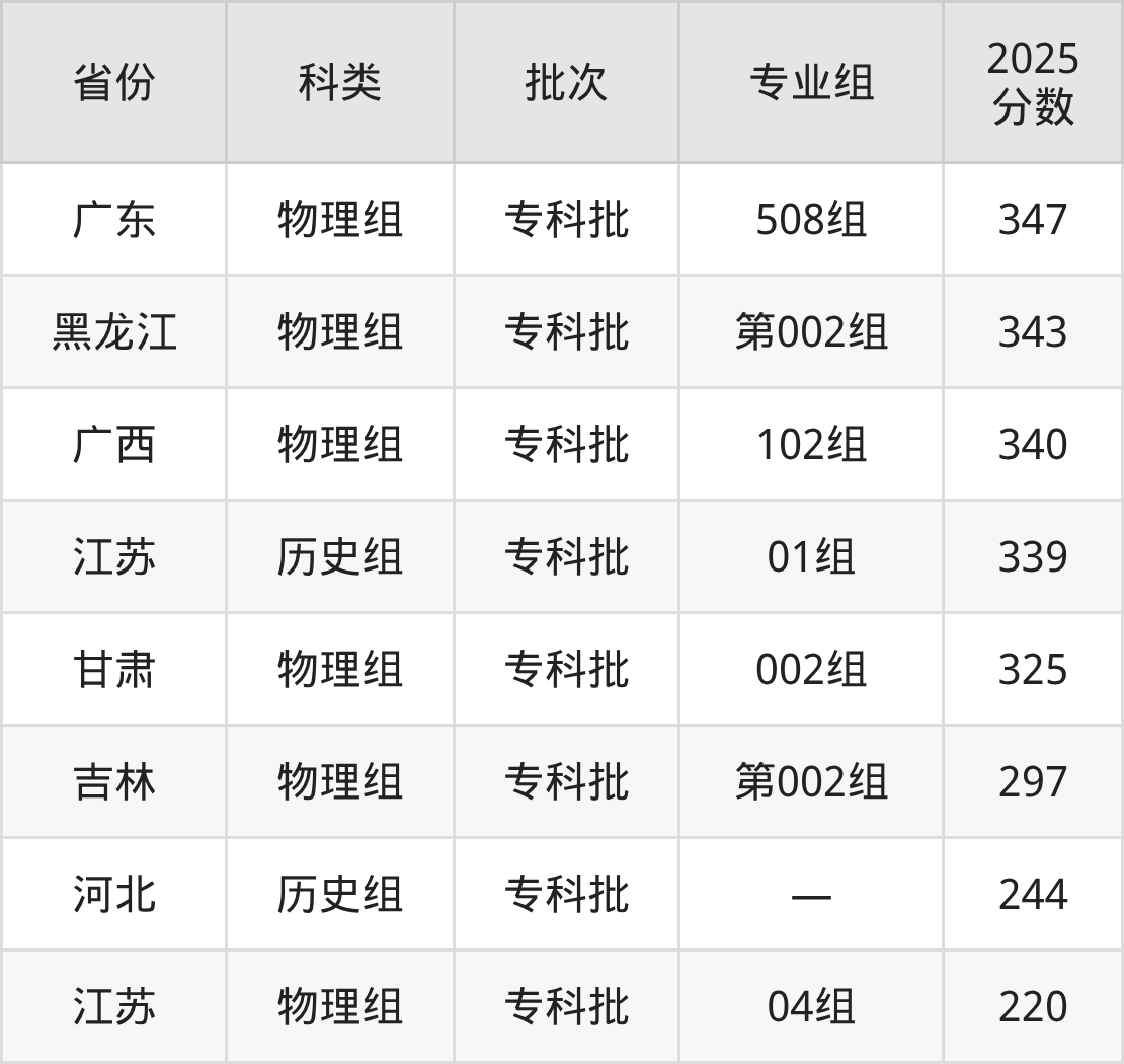 2025年南通师范高等专科学校在全国普通批次招生的录取分数范围位于220~490分之间,其中省内分数范围为220分~490分,历史组最低分专业组为“01组”,考生339分即可报考,物理组最低分专业组为“04组”,考生220分即可报考。