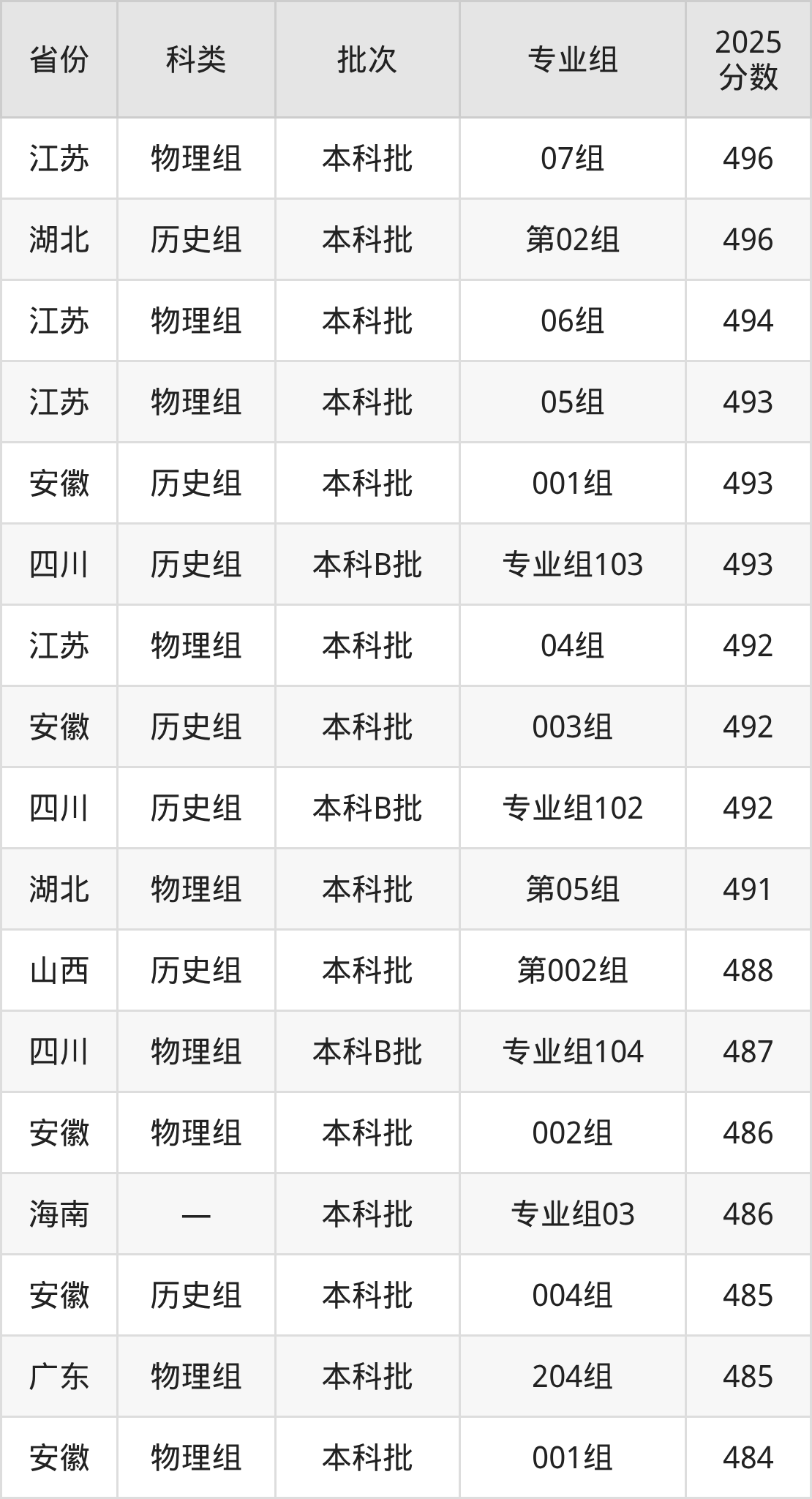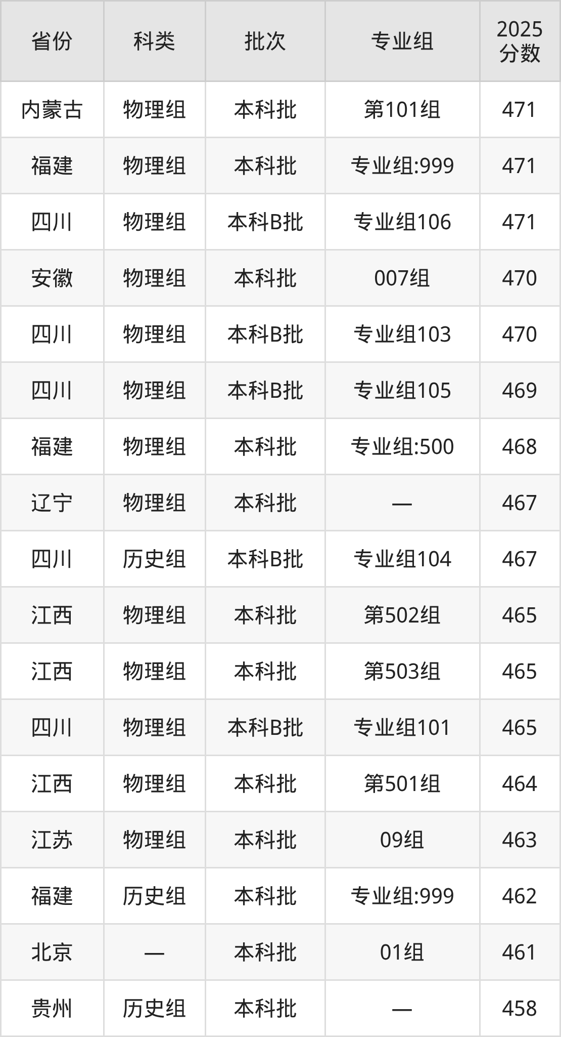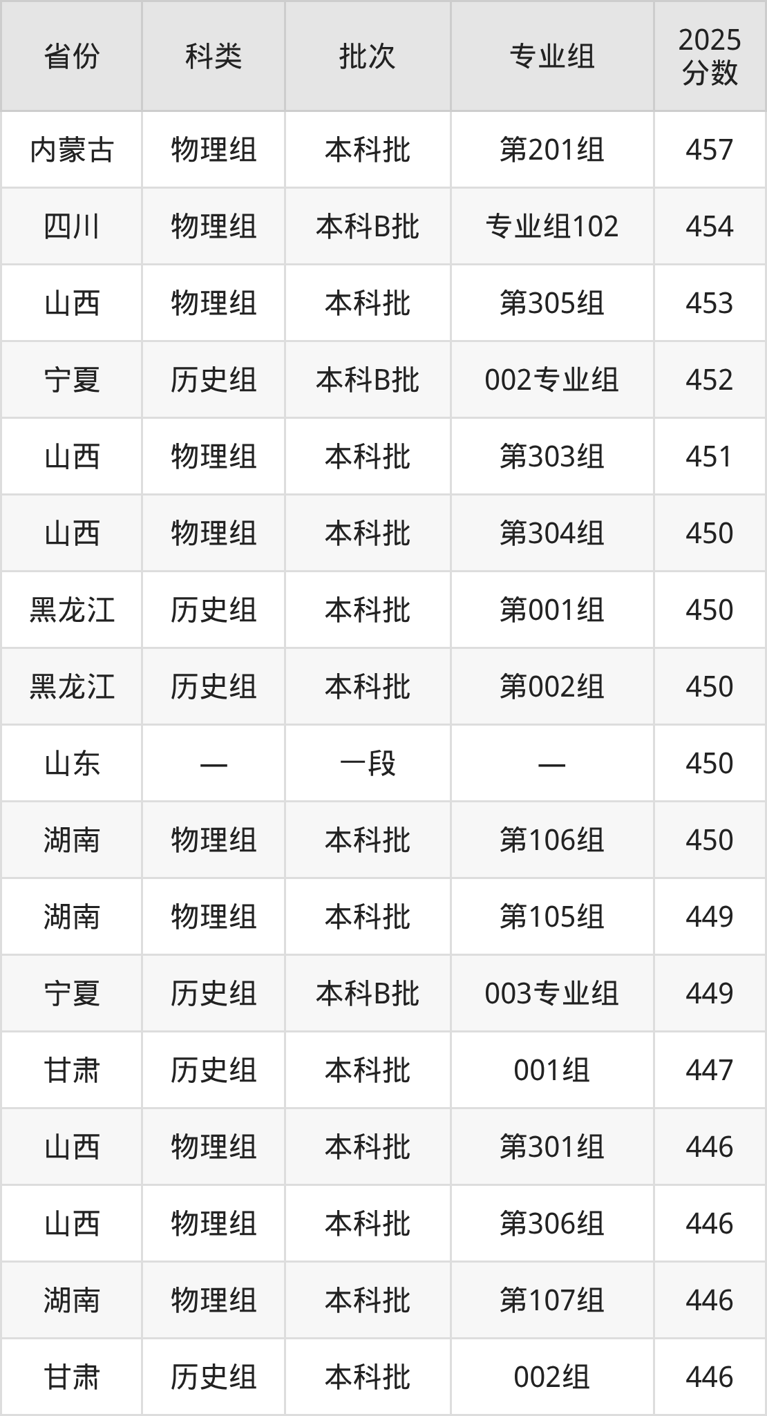 2025年西南财经大学天府学院在全国普通批次招生的录取分数范围位于357~544分之间,其中省内分数范围为357分~497分,历史组最低分专业组为“专业组103”,考生388分即可报考,物理组最低分专业组为“专业组103”,考生357分即可报考。