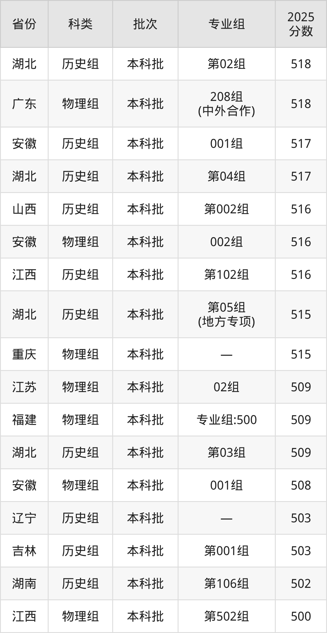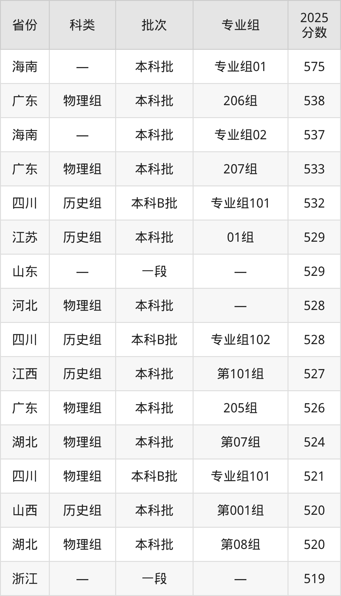 而海南地区考生的分数门槛最高,2025年湖北科技学院专业组01在海南招生最低分为575分,考生至少要超本科线95分才有可能被录取。
