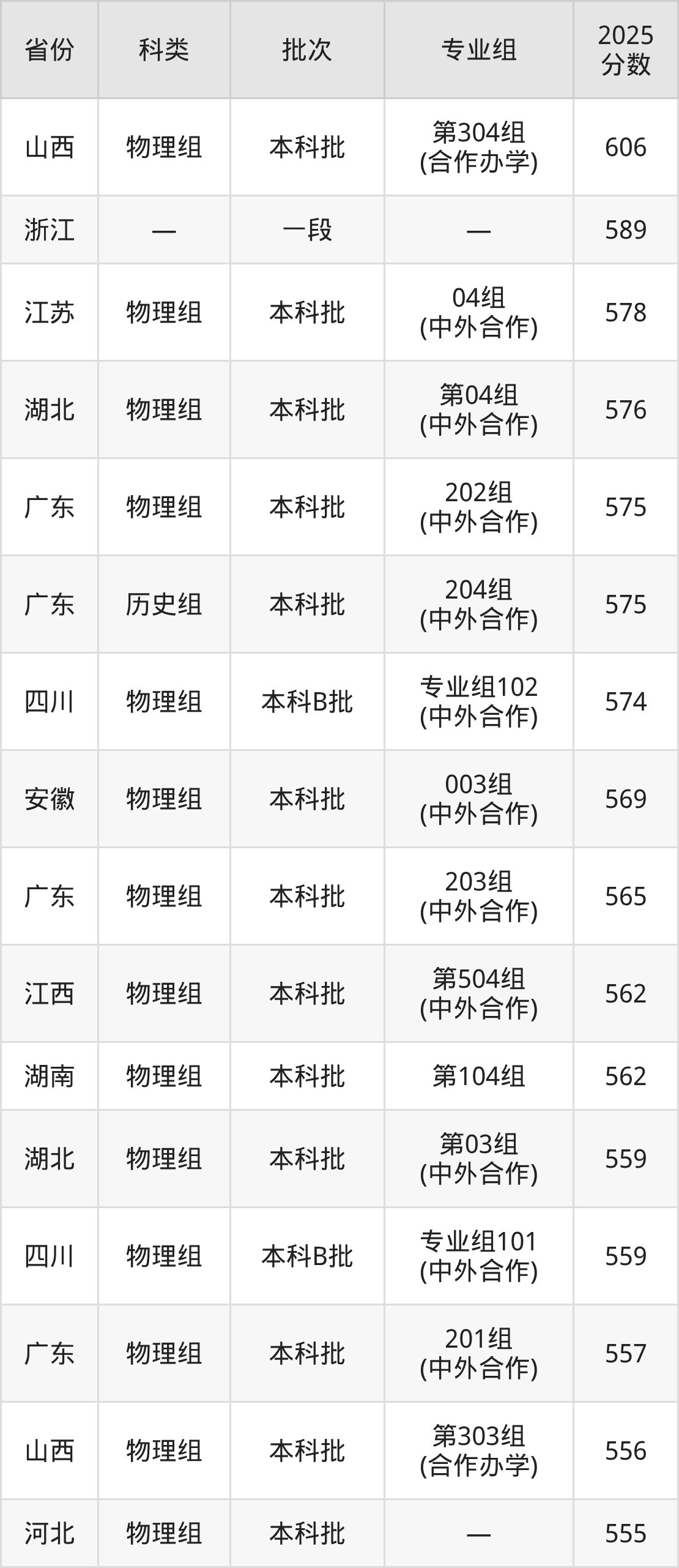 而山西地区物理组考生的分数门槛最高,2025年深圳北理莫斯科大学第304组(合作办学)在山西招生最低分为606分,考生至少要超本科线187分才有可能被录取。