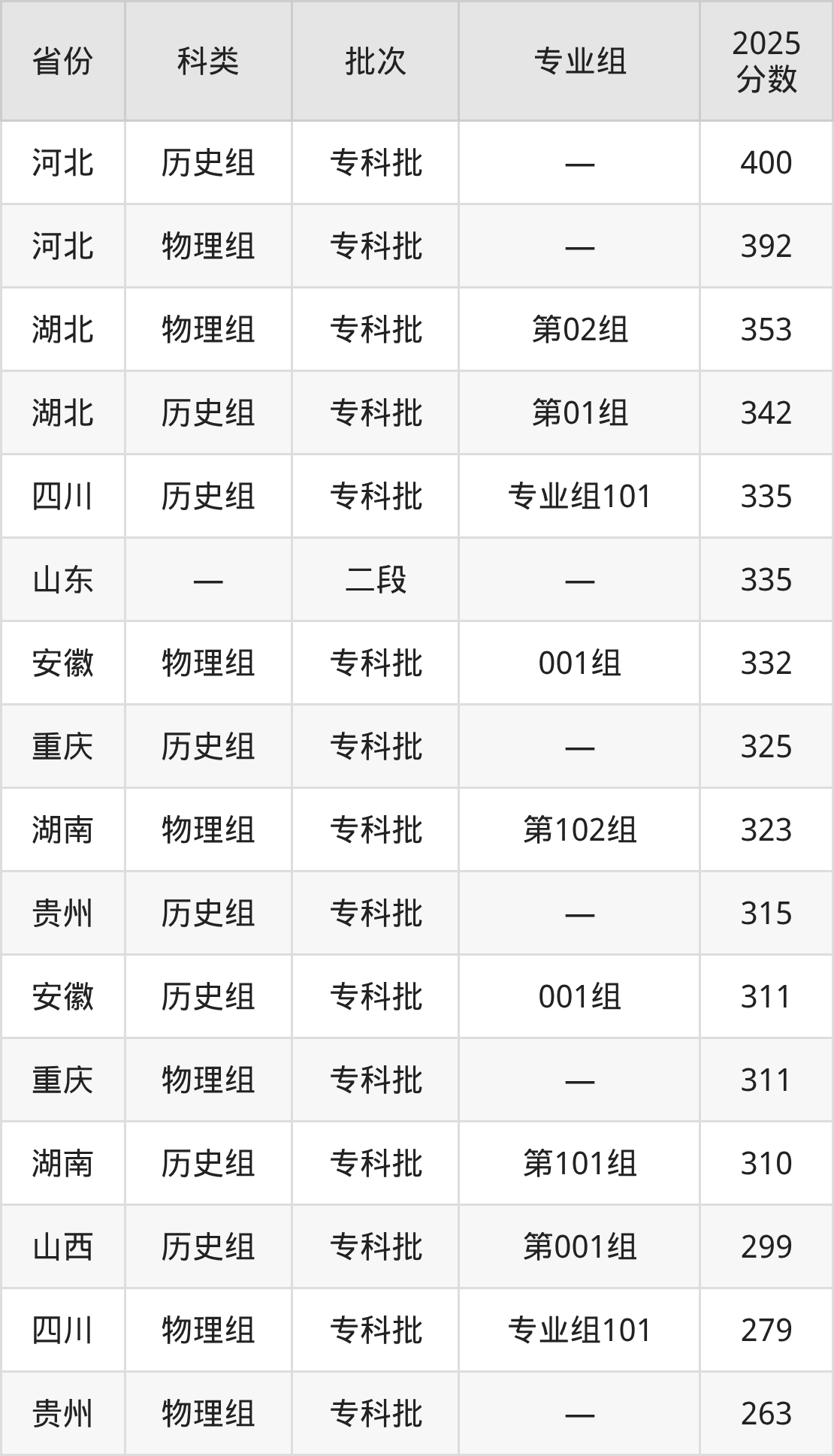 下面是南阳科技职业学院2025年在全国各省的录取分数线一览表,供参考: