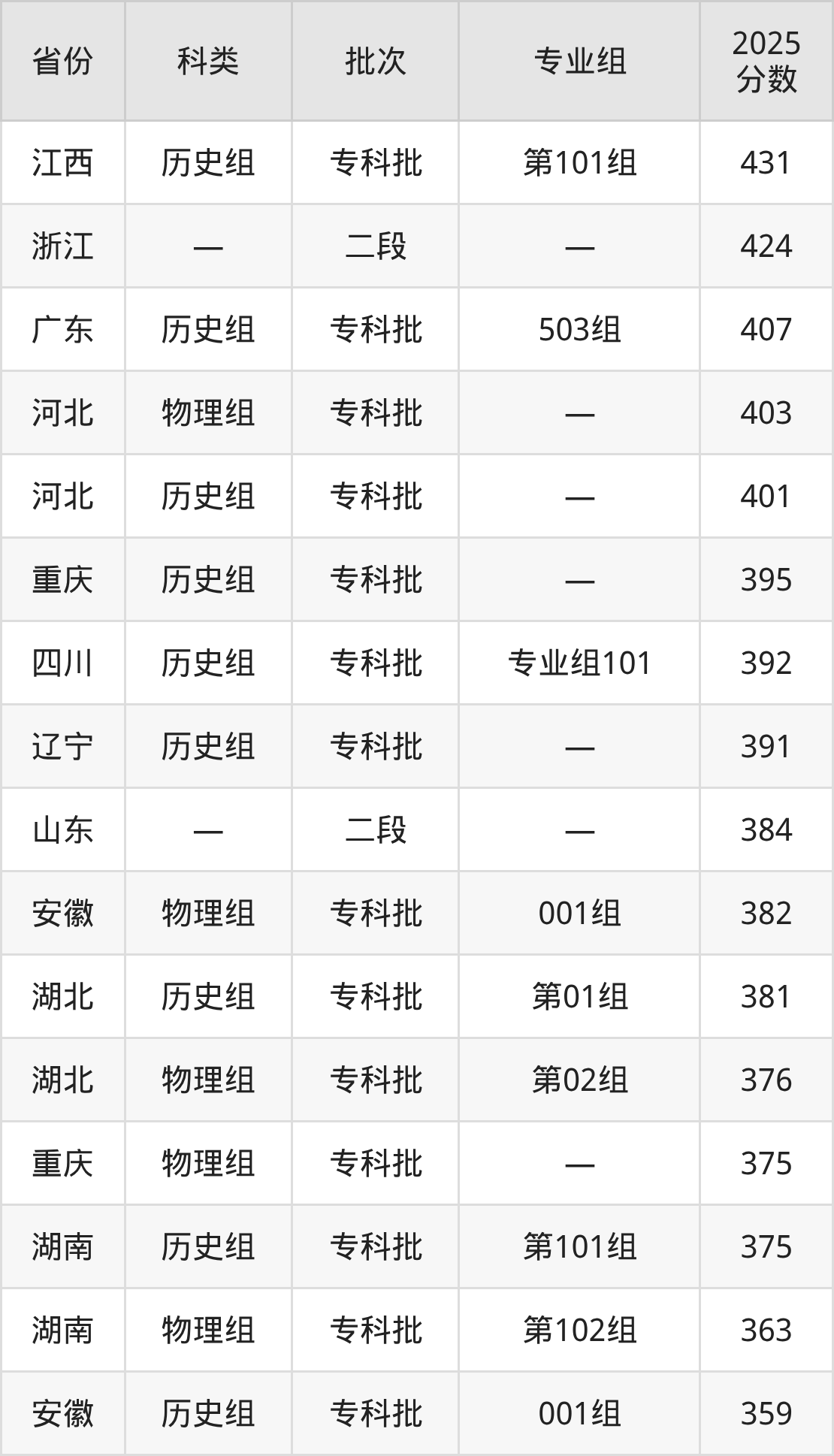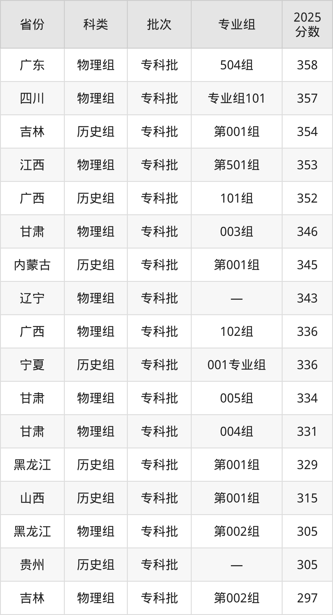 而江西地区历史组考生的分数门槛最高,2025年长沙环境保护职业技术学院第101组在江西招生最低分为431分,考生至少要超专科线141分才有可能被录取。