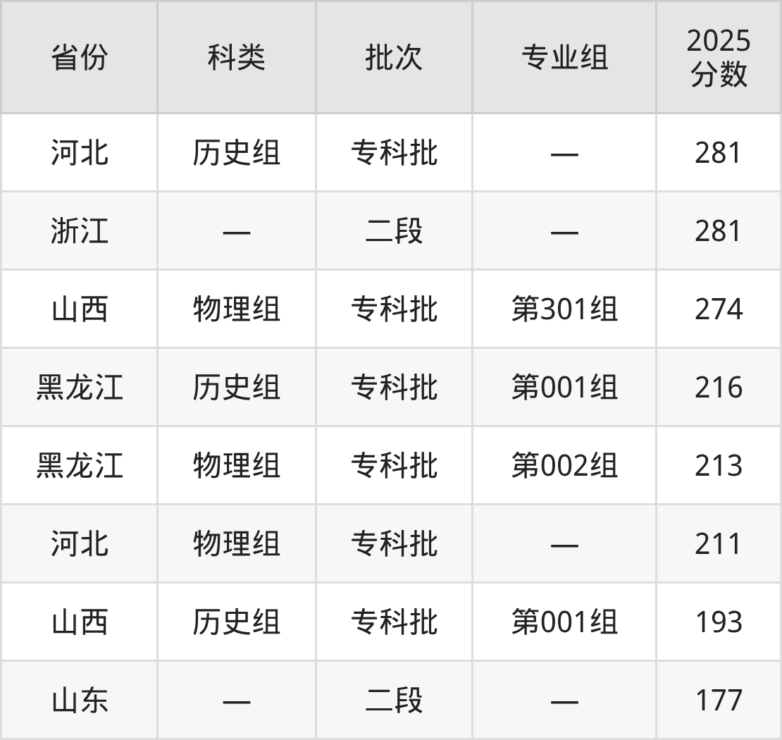 而河北地区历史组考生的分数门槛最高,2025年北京北大方正软件职业技术学院在河北招生最低分为281分,考生至少要超专科线81分才有可能被录取。