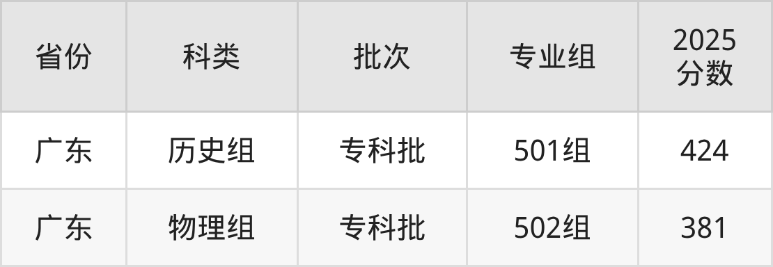 广东潮州卫生健康职业学院2026年录取分数需在高招结束官方数据公布后更新,2026届有意向报考该校的同学,可以在填报志愿时参考广东潮州卫生健康职业学院2025年录取分数线: