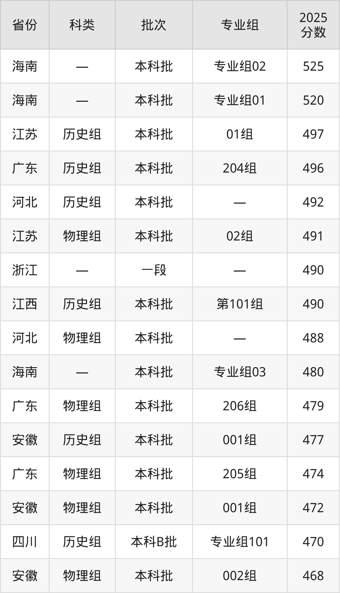 而海南地区考生的分数门槛最高,2025年西安明德理工学院专业组02在海南招生最低分为525分,考生至少要超本科线45分才有可能被录取。