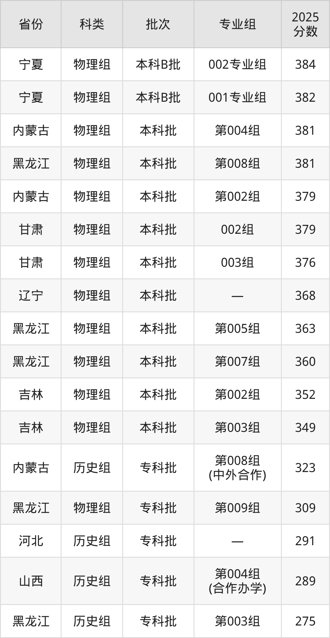 下面是河北科技学院2025年在全国各省的录取分数线一览表,供参考: