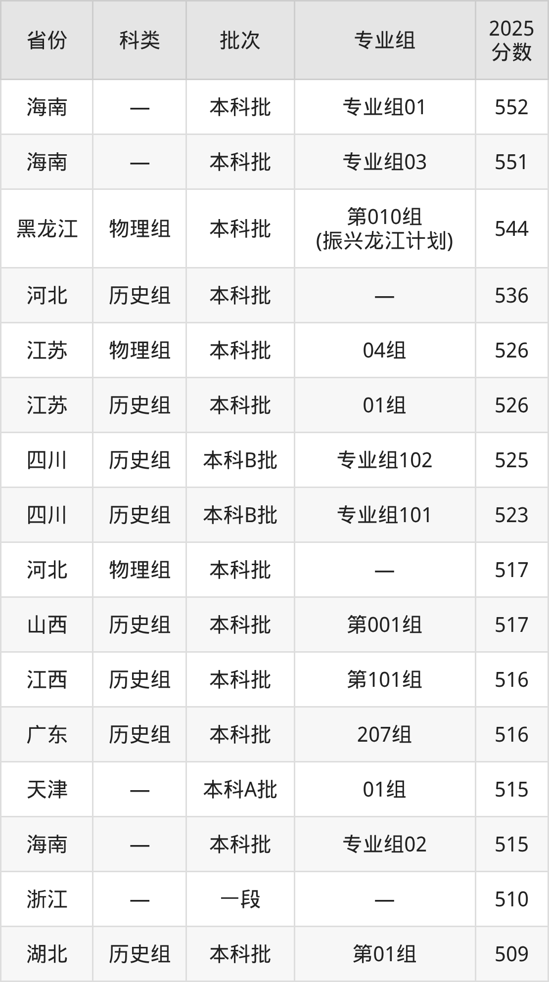 而海南地区考生的分数门槛最高,2025年黑龙江工程学院专业组01在海南招生最低分为552分,考生至少要超本科线72分才有可能被录取。