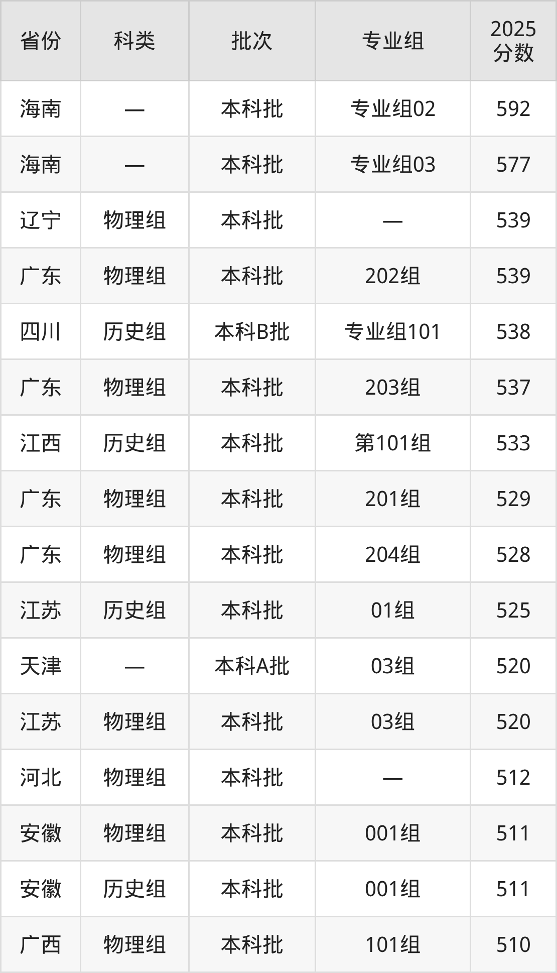 而海南地区考生的分数门槛最高,2025年广东轻工职业技术大学专业组02在海南招生最低分为592分,考生至少要超本科线112分才有可能被录取。