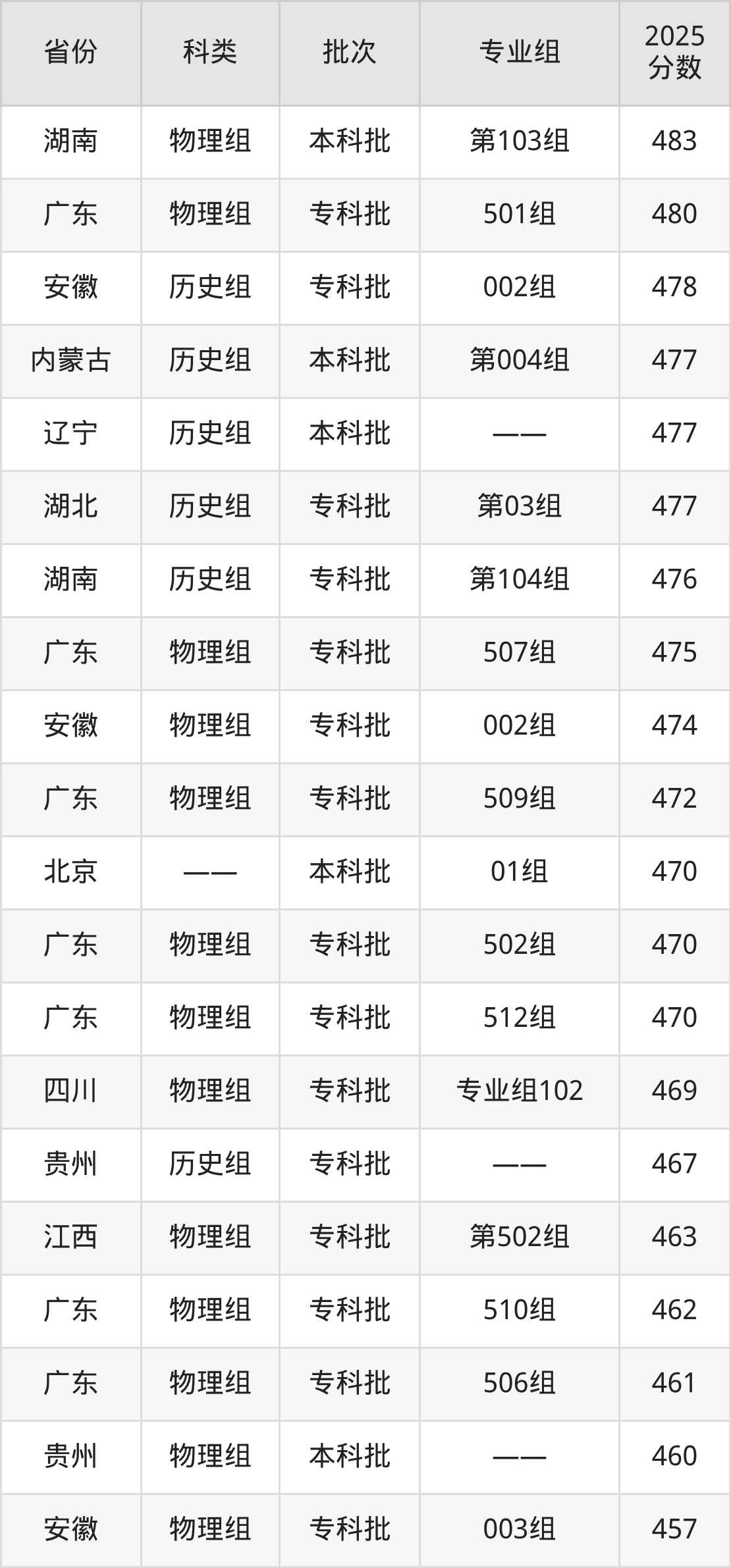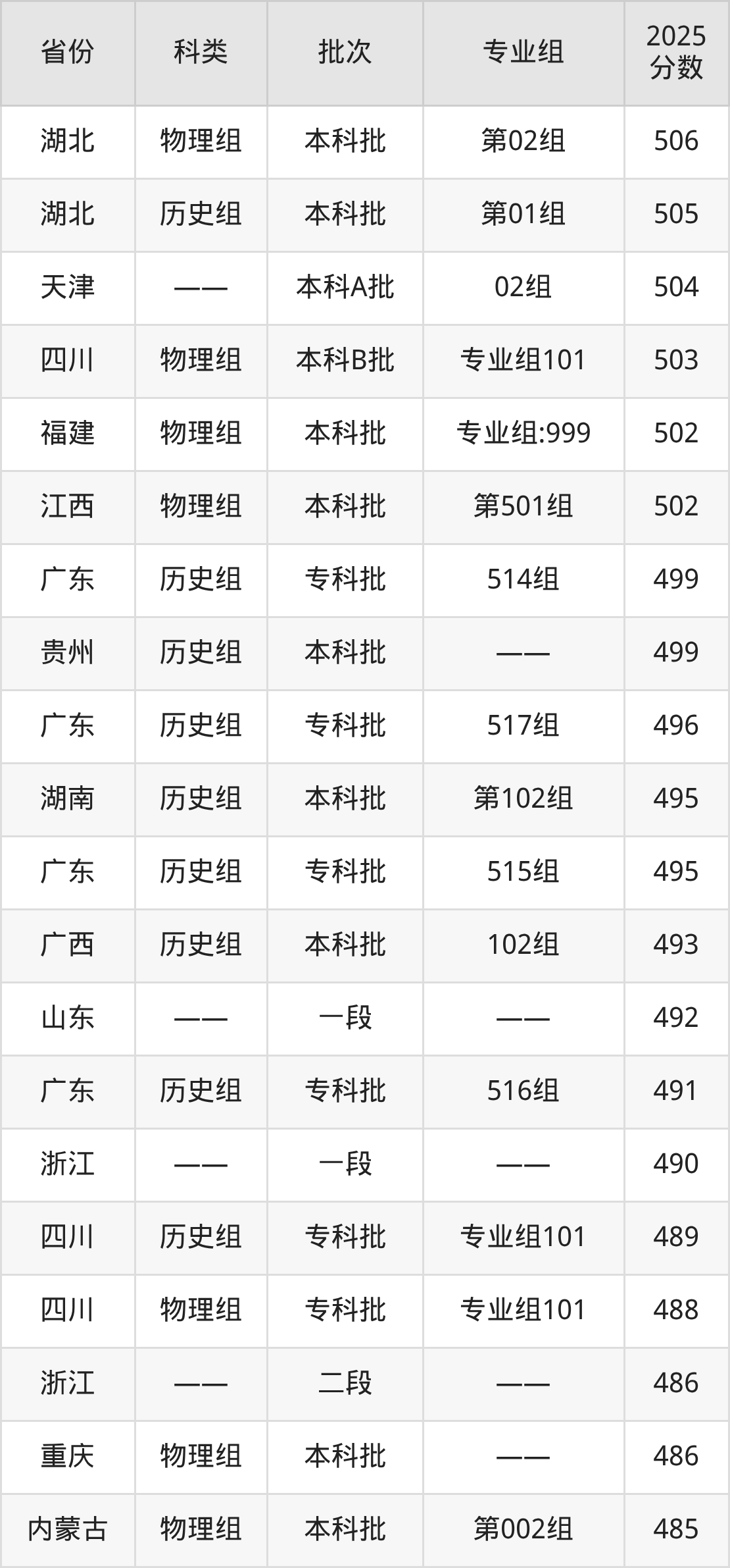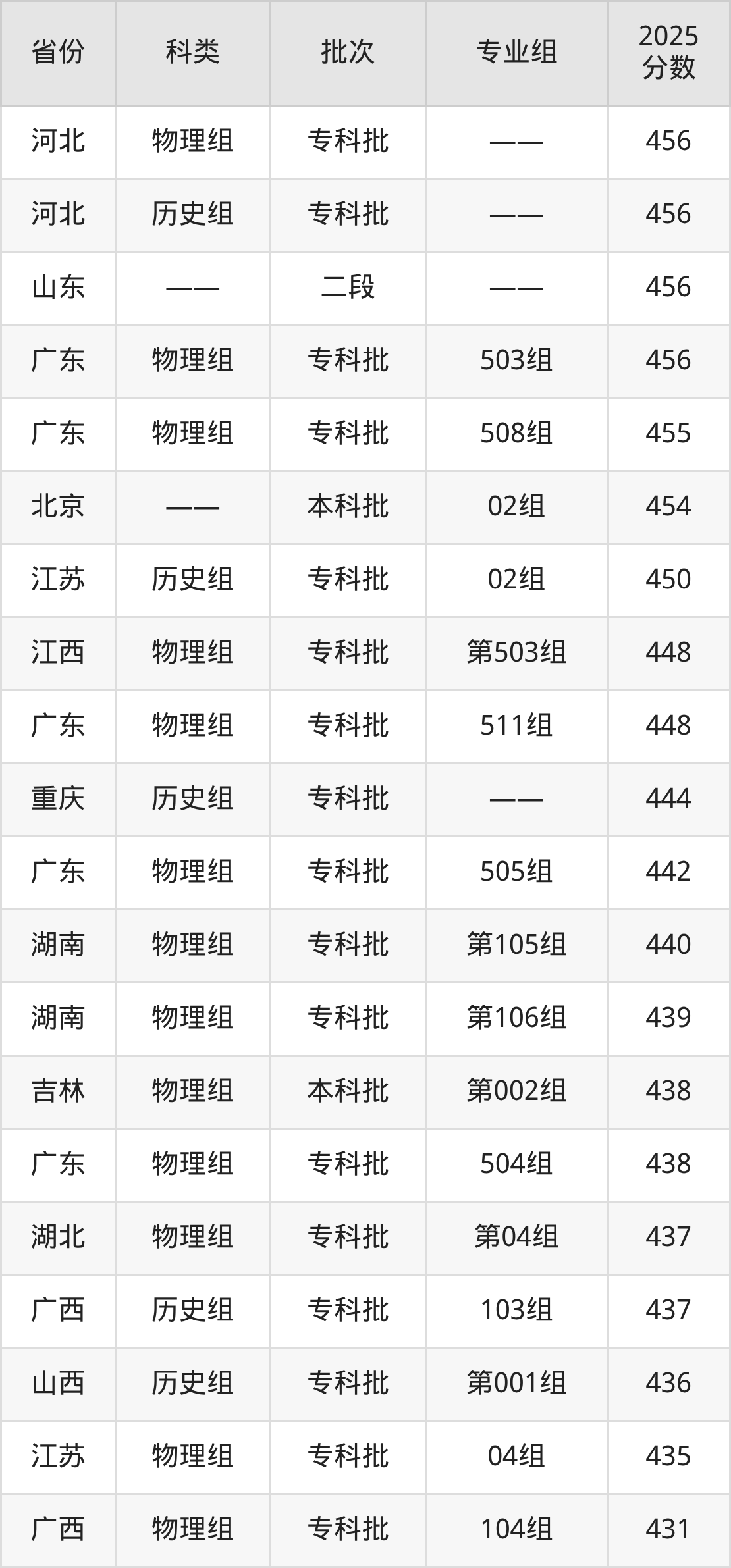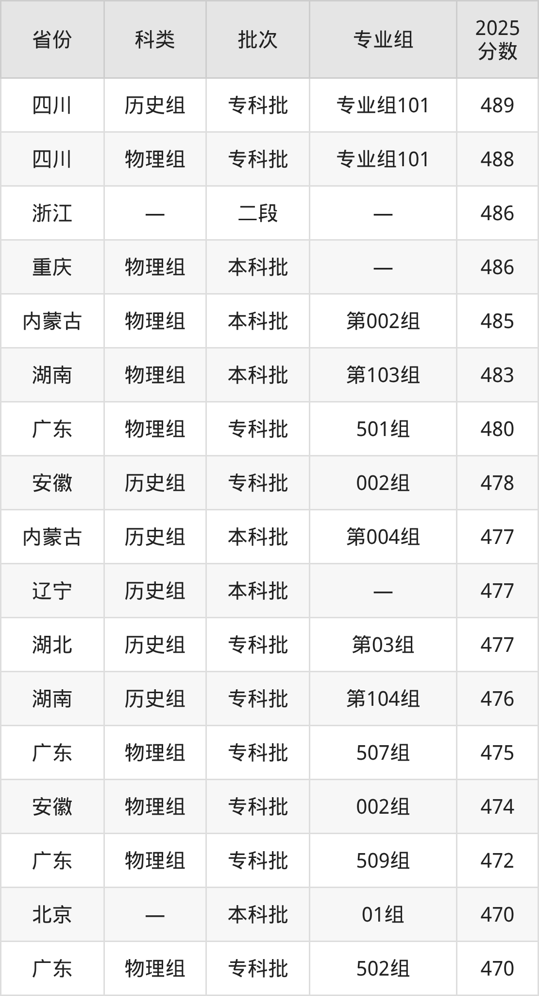 下面是广东轻工职业技术大学2025年在全国各省的录取分数线一览表,供参考: