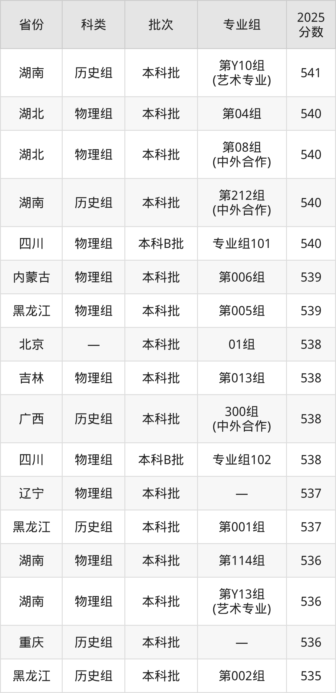 下面是浙江传媒学院2025年在全国各省的录取分数线一览表,供参考: