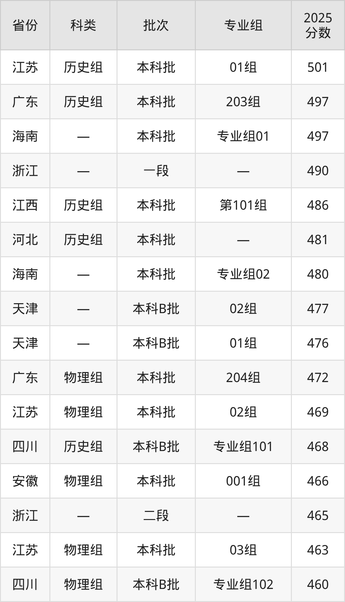 而江苏地区历史组考生的分数门槛最高,2025年长春电子科技学院01组在江苏招生最低分为501分,考生至少要超本科线19分才有可能被录取。