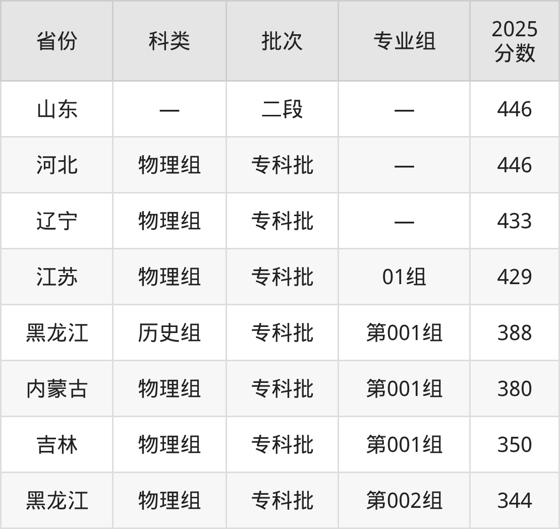 而山东地区考生的分数门槛最高,2025年哈尔滨电力职业技术学院在山东招生最低分为446分,考生至少要超二段线296分才有可能被录取。