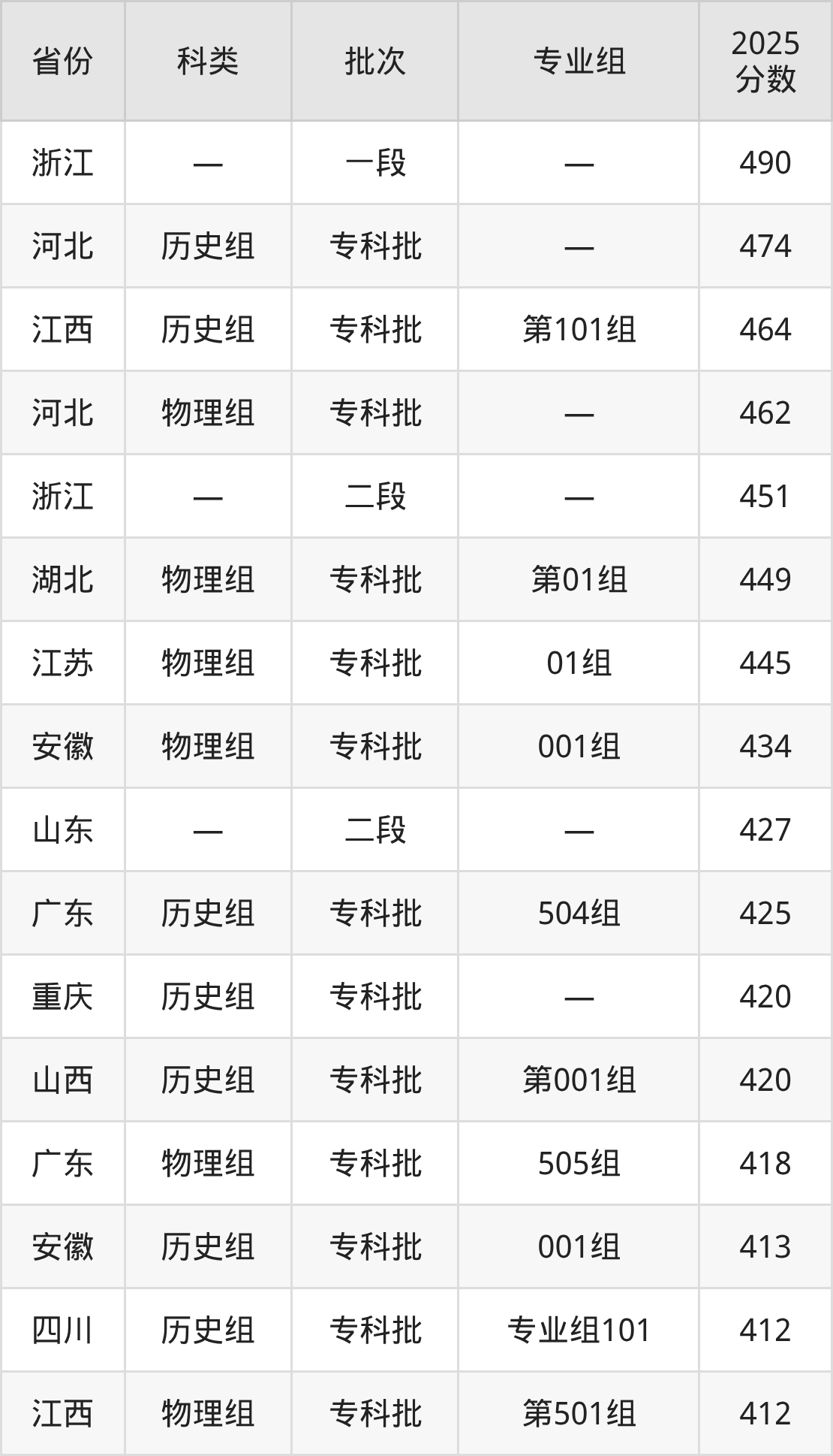 而浙江地区考生的分数门槛最高,2025年天津轻工职业技术学院在浙江招生最低分为490分,考生至少要超一段线0分才有可能被录取。