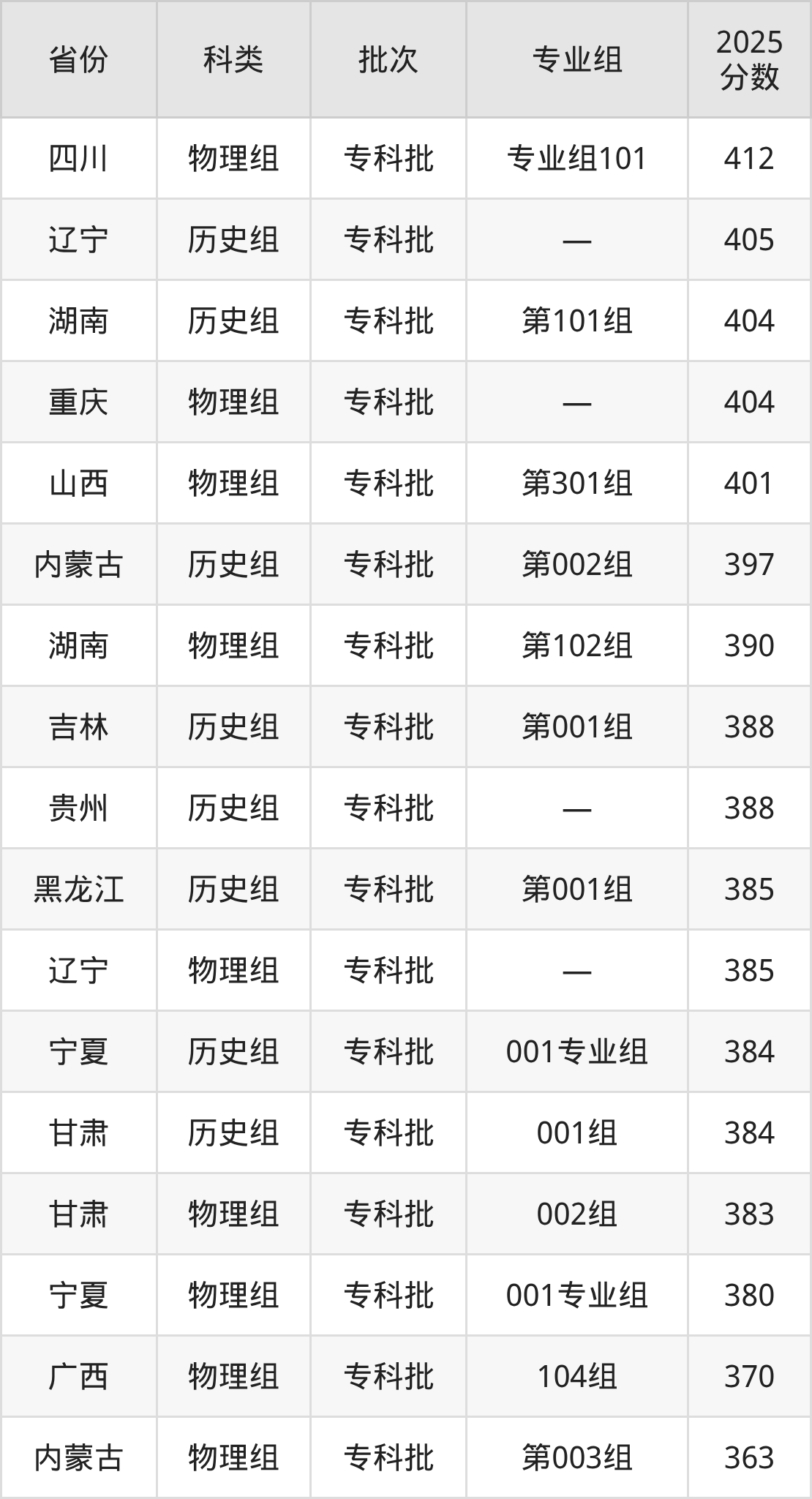 下面是天津轻工职业技术学院2025年在全国各省的录取分数线一览表,供参考: