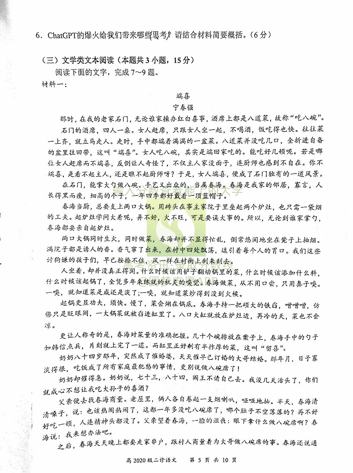 五、2023宜宾二诊考试文科综合试题及参考答案