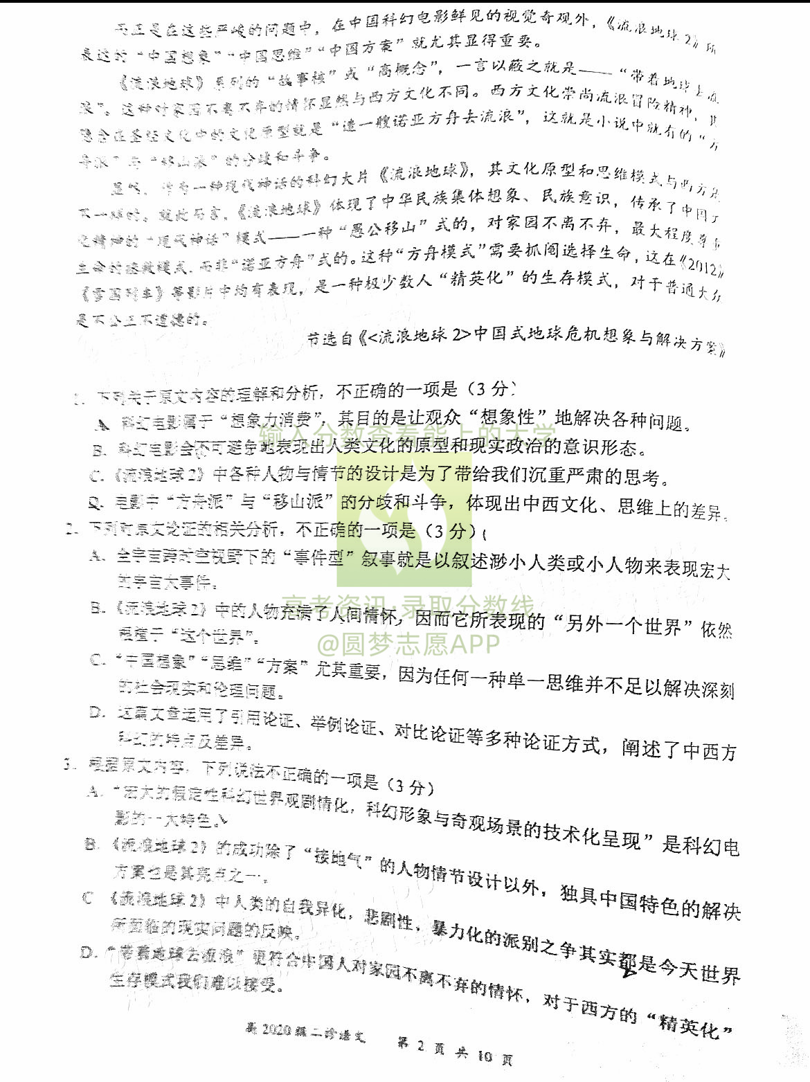 六、2023宜宾二诊考试理科综合试题及参考答案