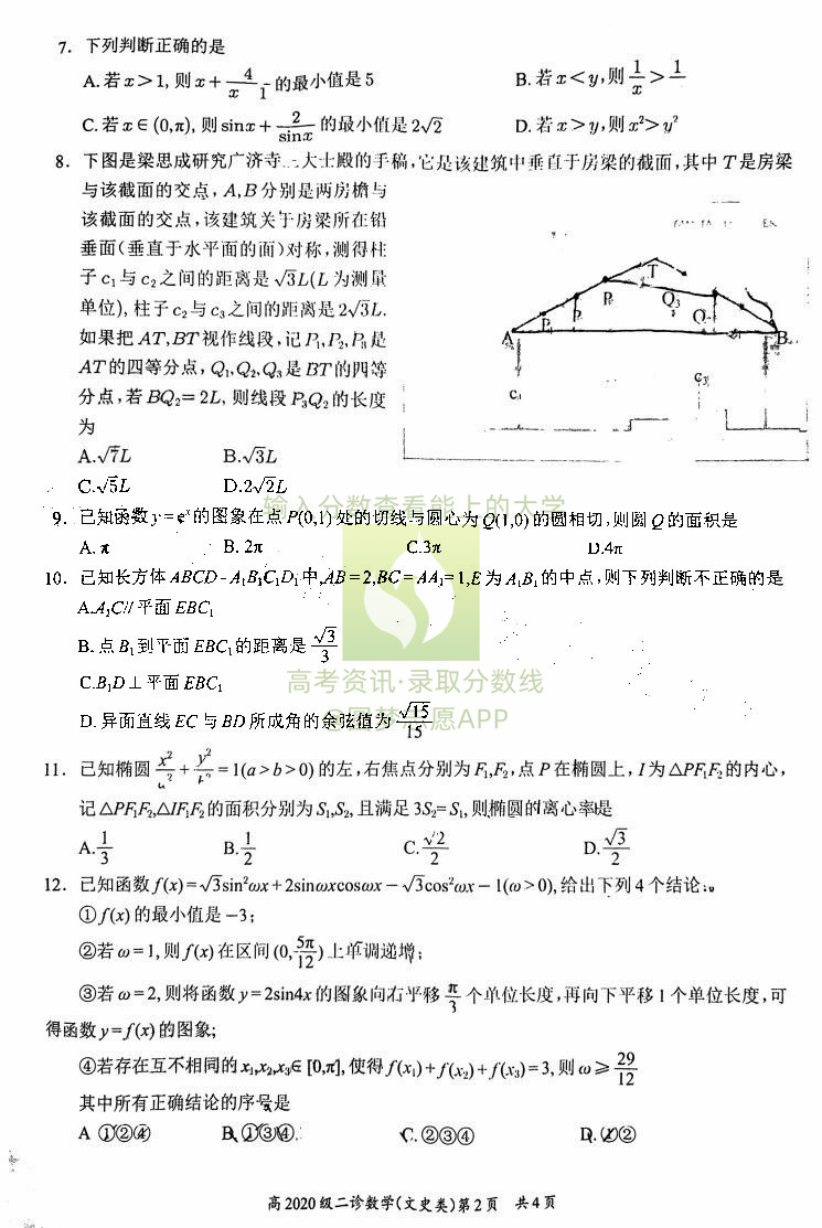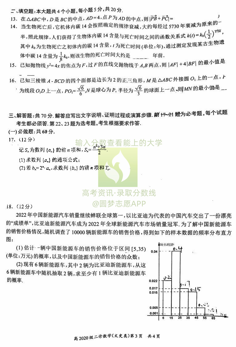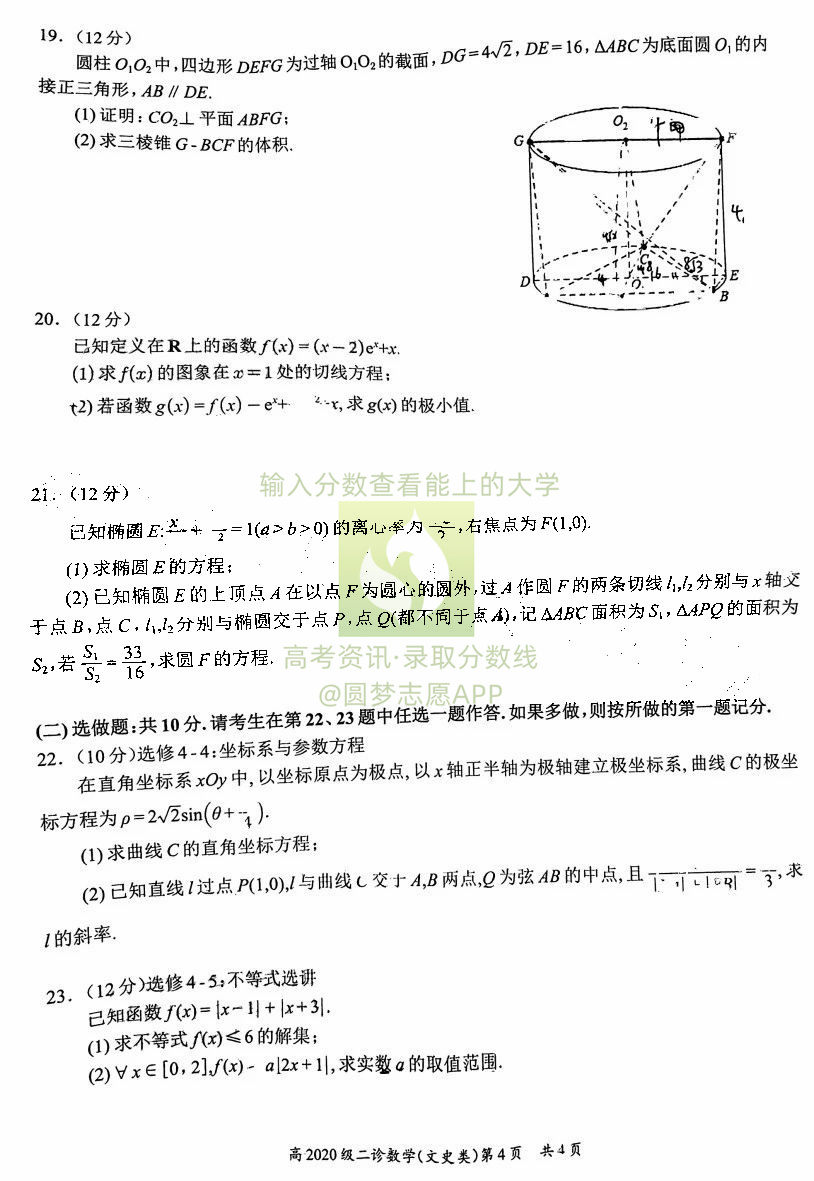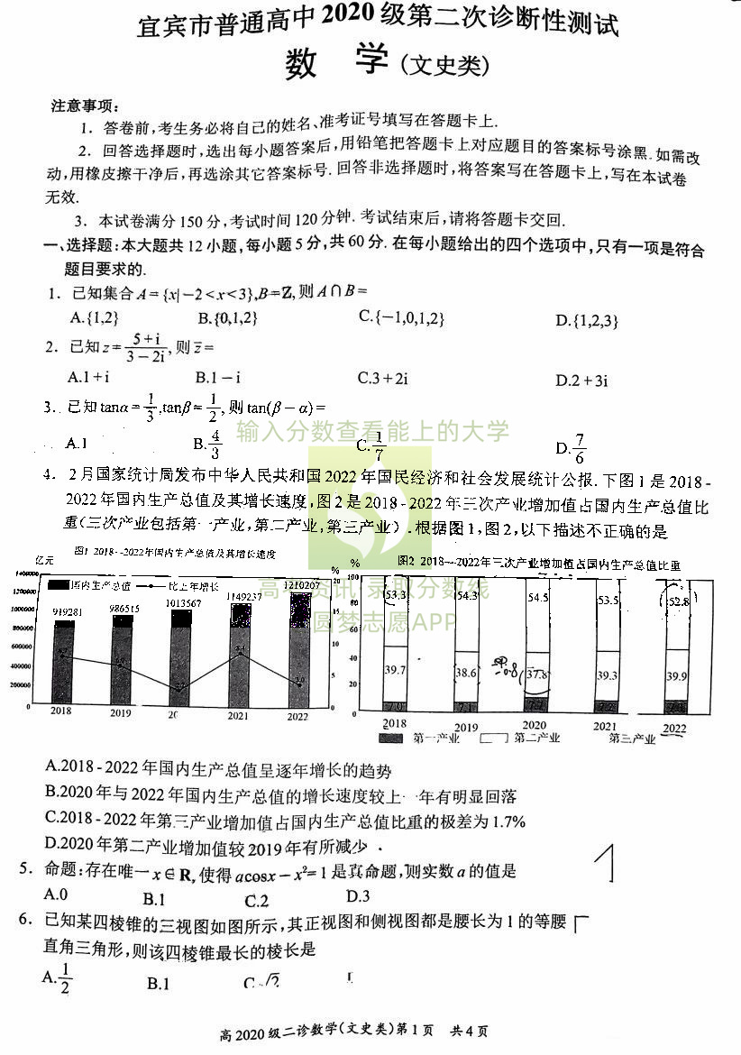 二、2023宜宾二诊考试文科数学试题及参考答案