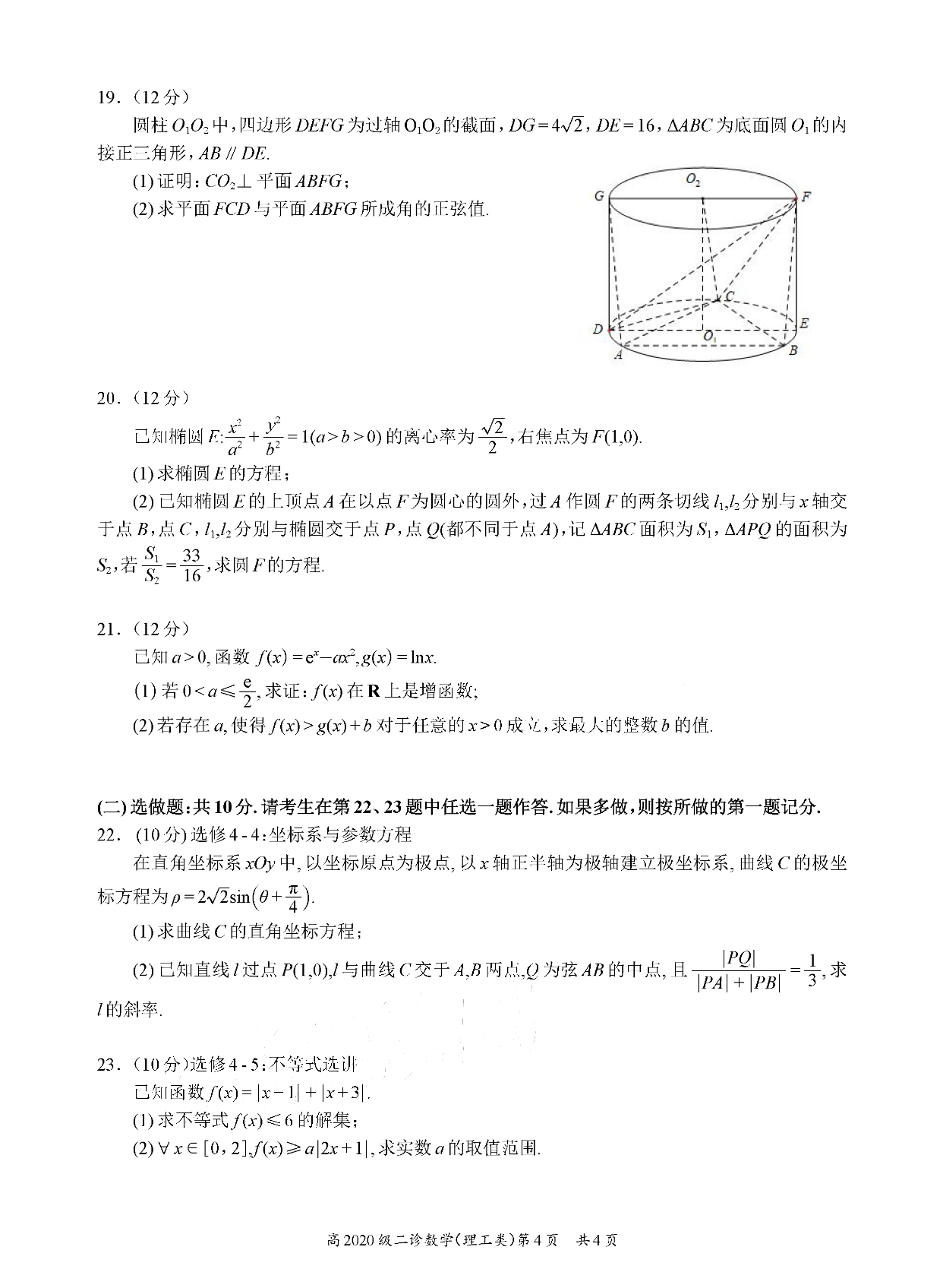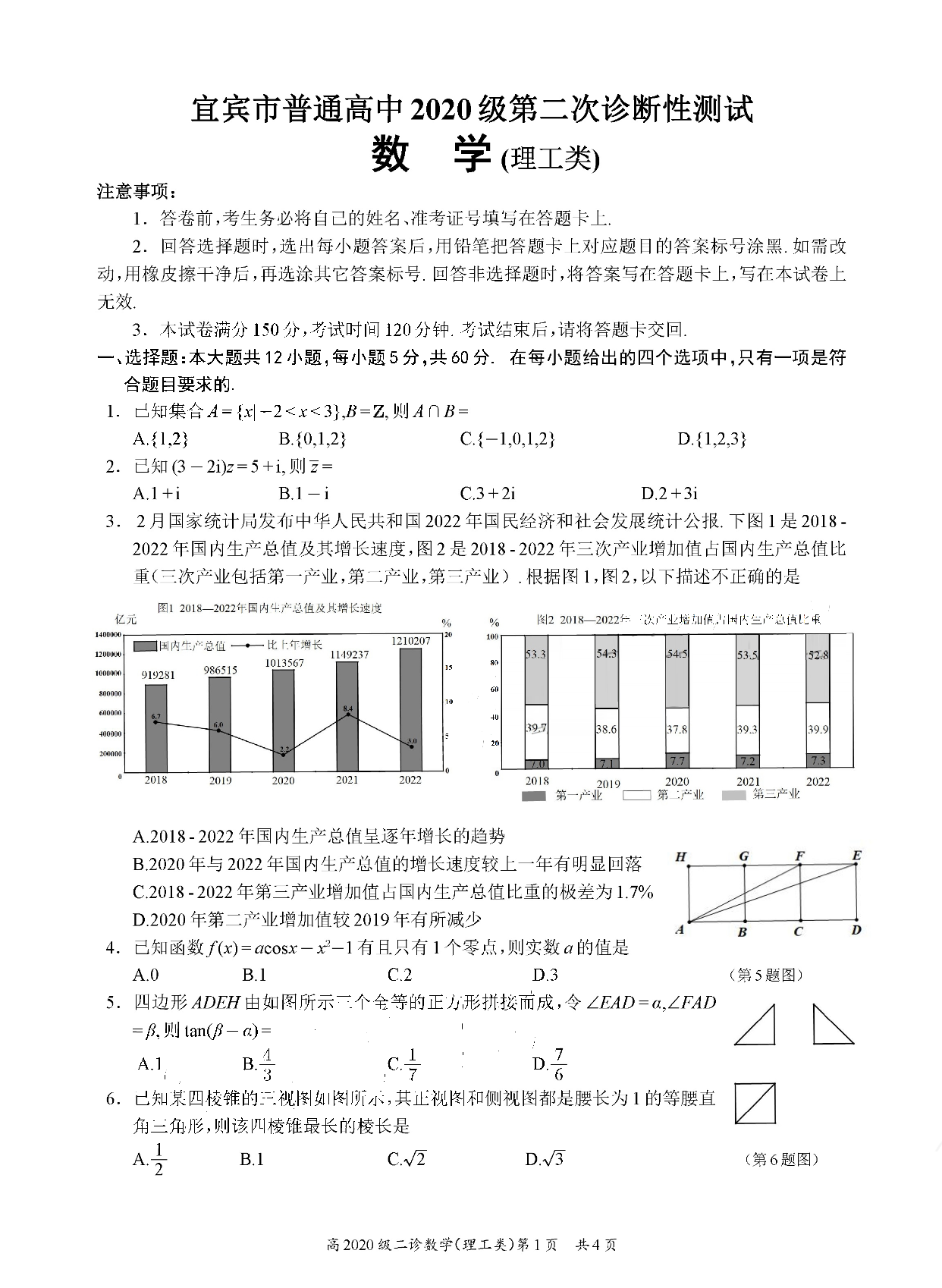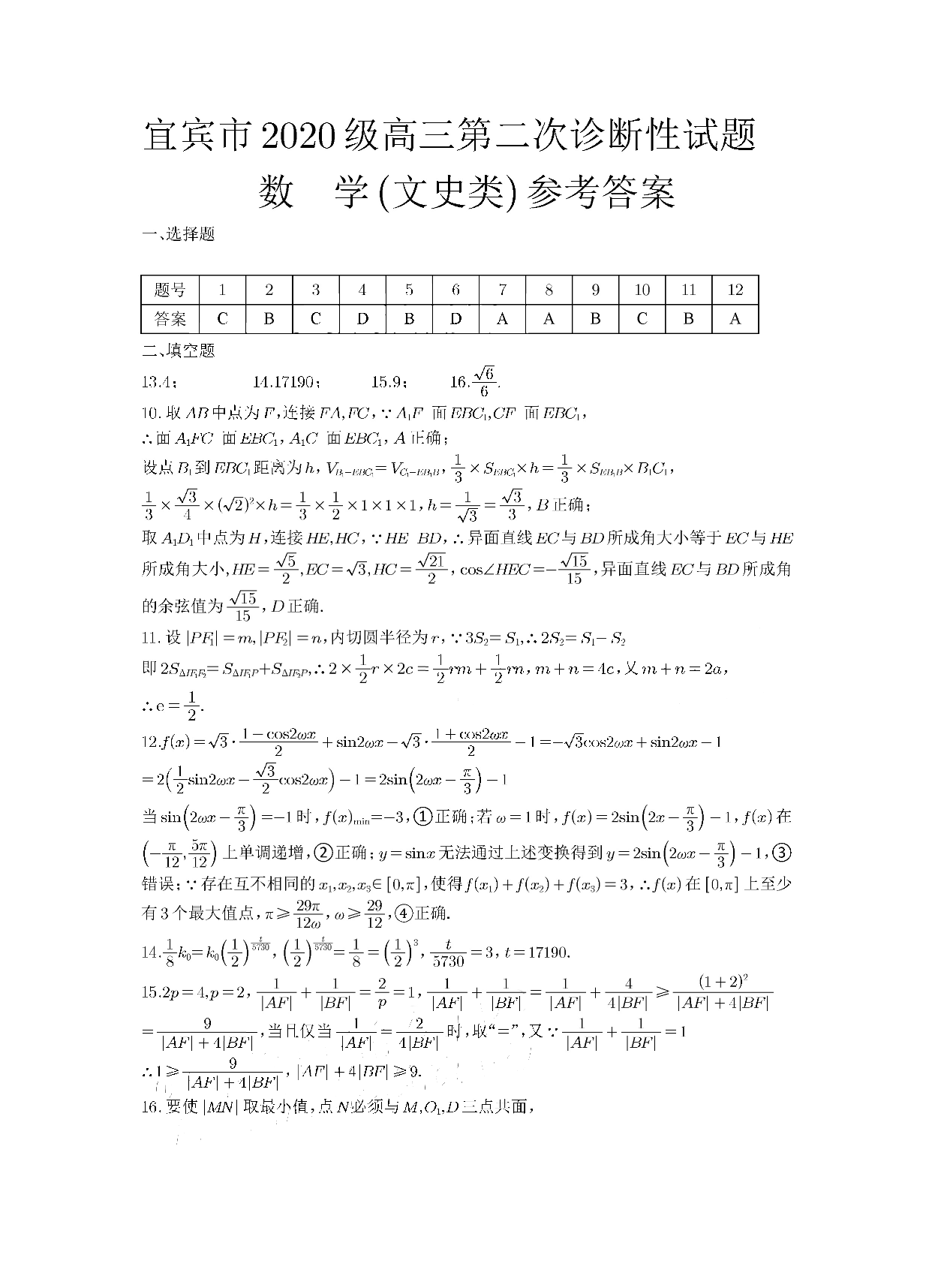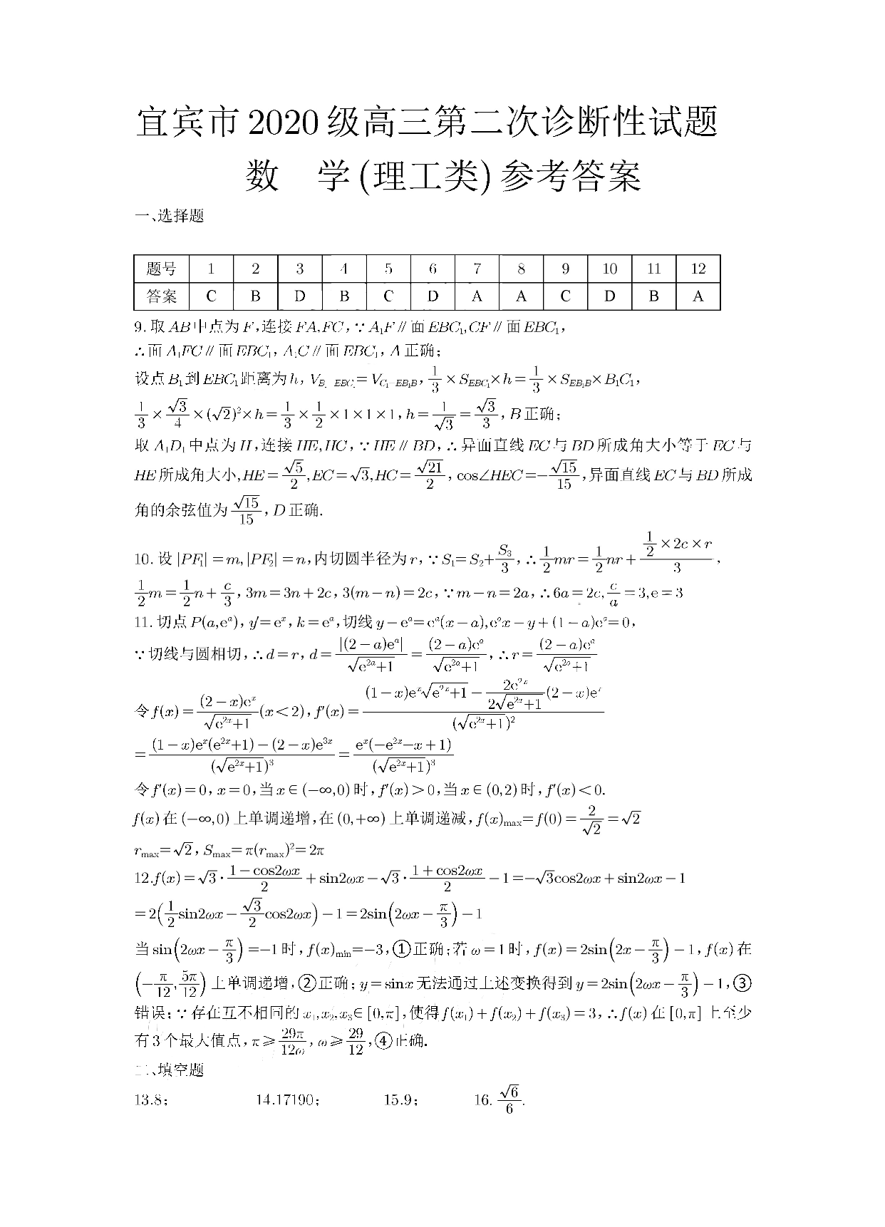 三、2023宜宾二诊考试理科数学试题及参考答案