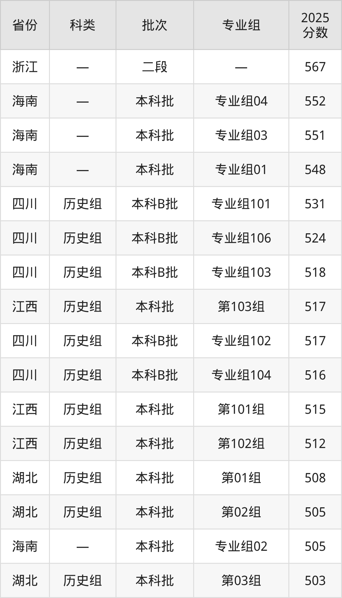 而浙江地区考生的分数门槛最高,2025年重庆人文科技学院在浙江招生最低分为567分,考生至少要超二段线299分才有可能被录取。