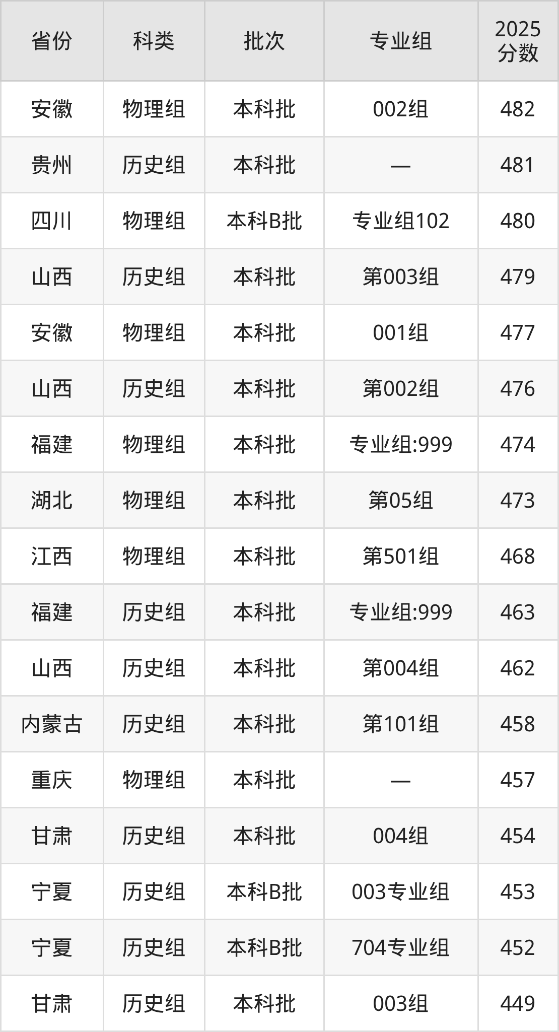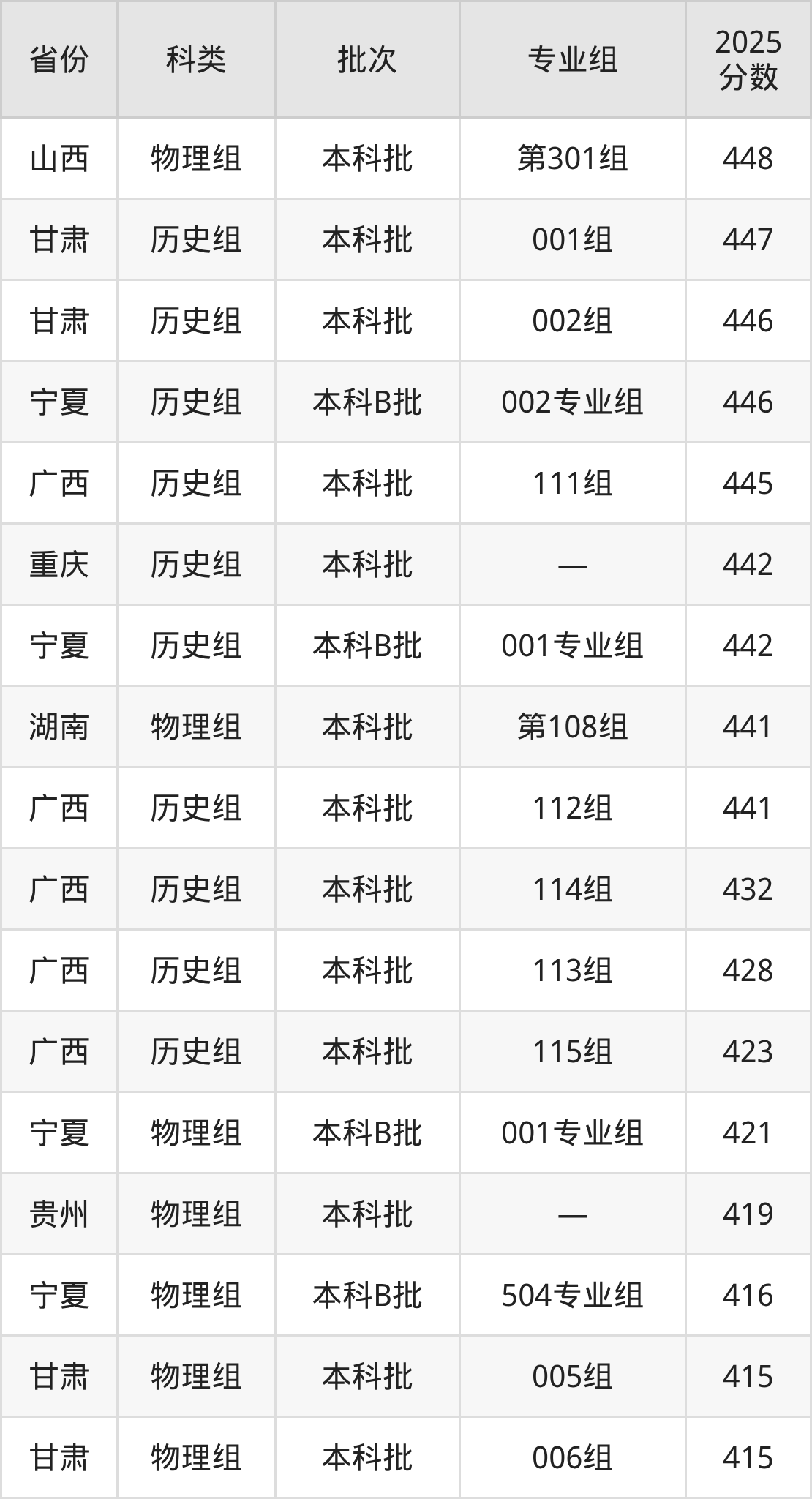 下面是重庆人文科技学院2025年在全国各省的录取分数线一览表,供参考: